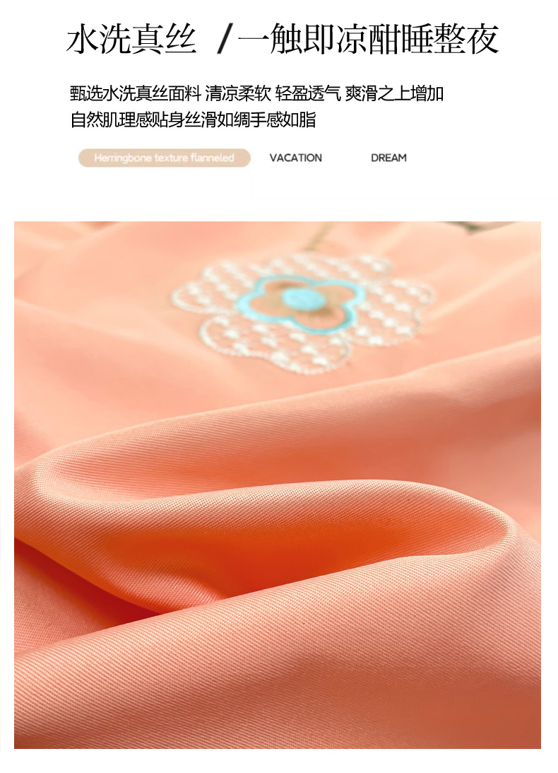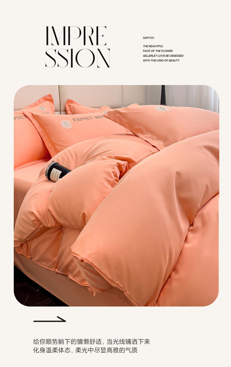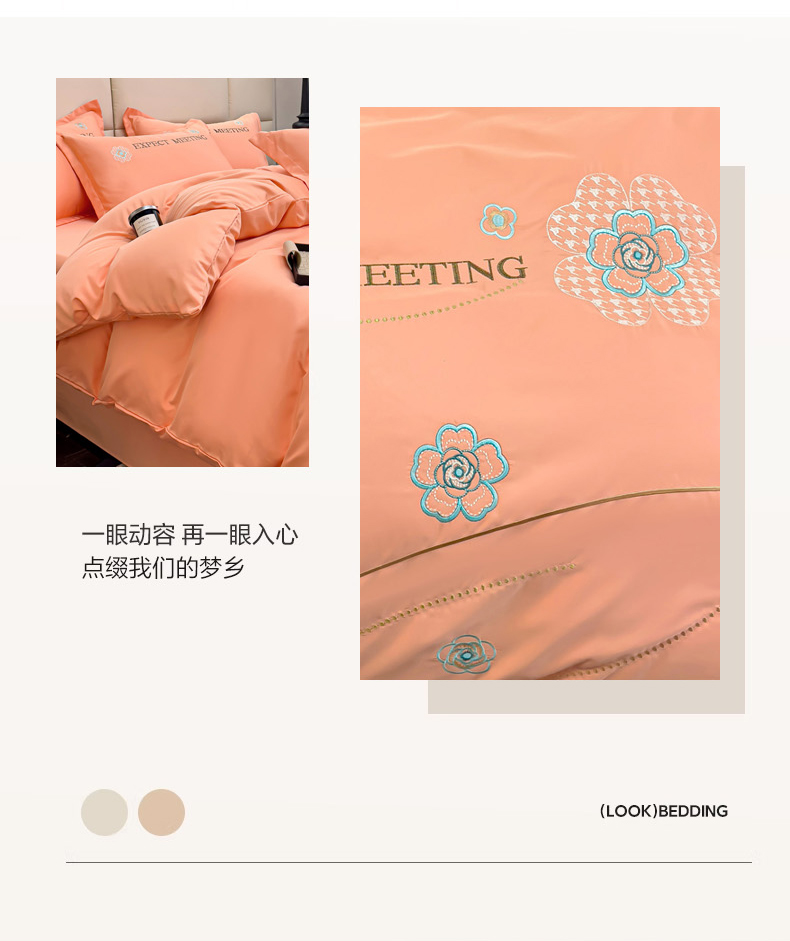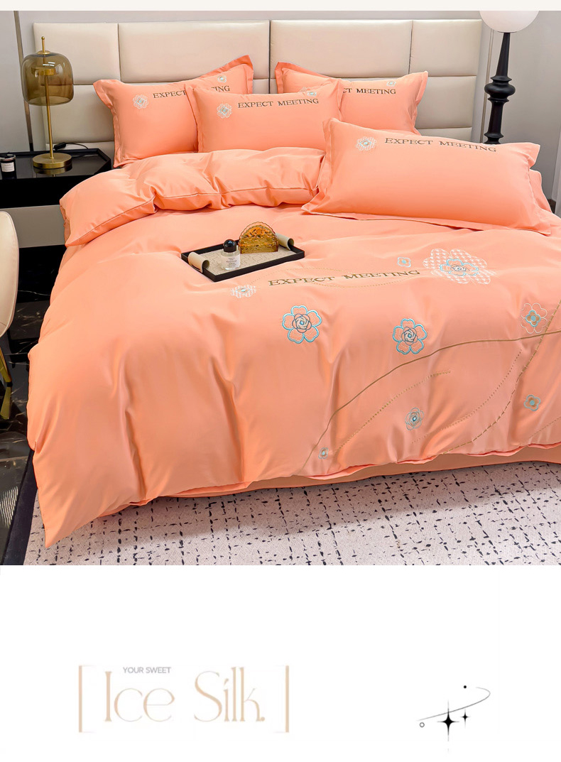 商品名称:恋佳居 2025新款水洗真丝刺绣四件套 花漾-橘色