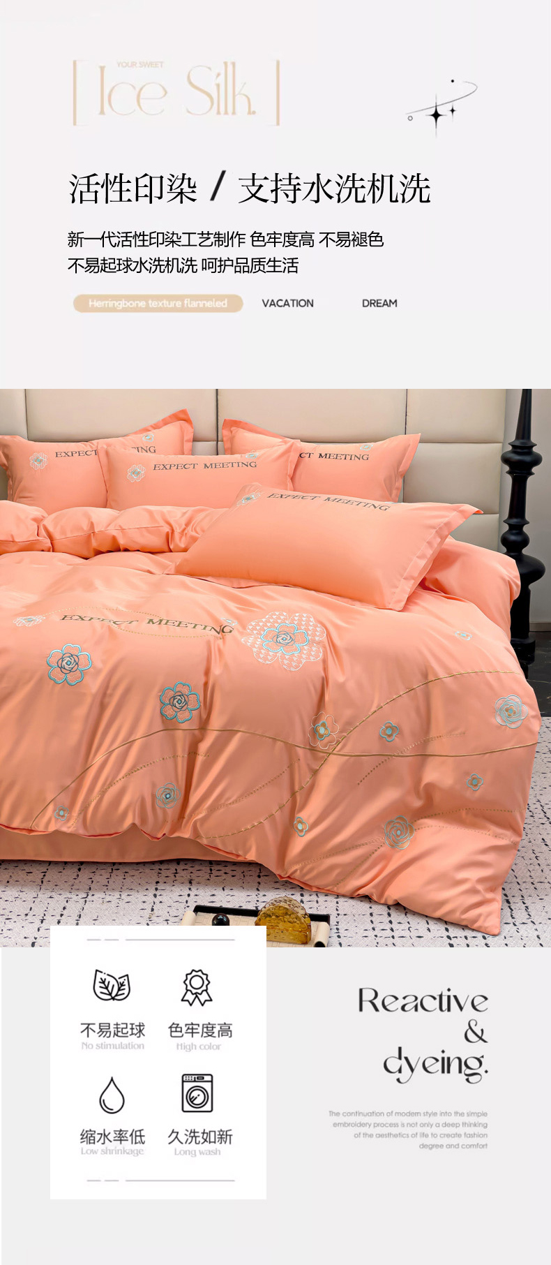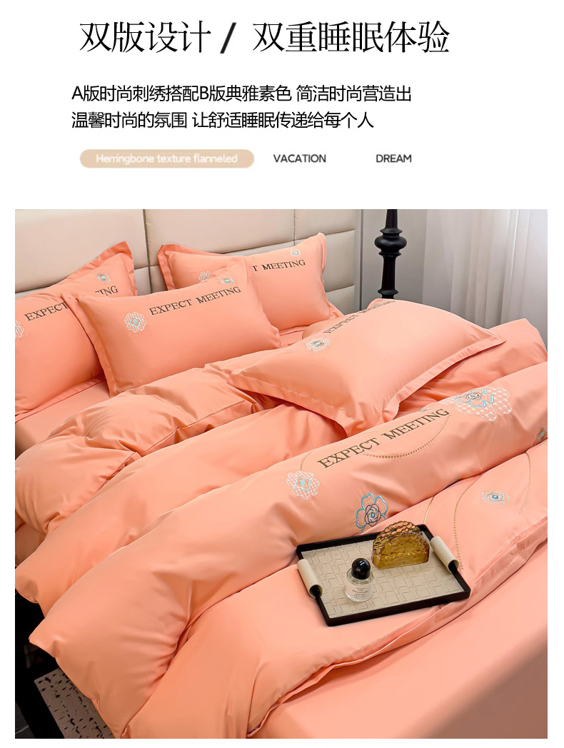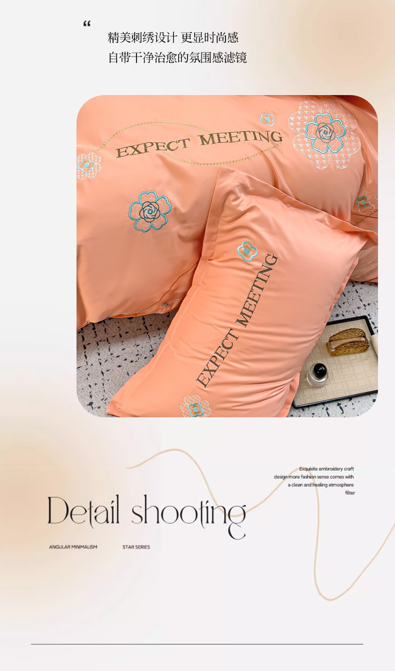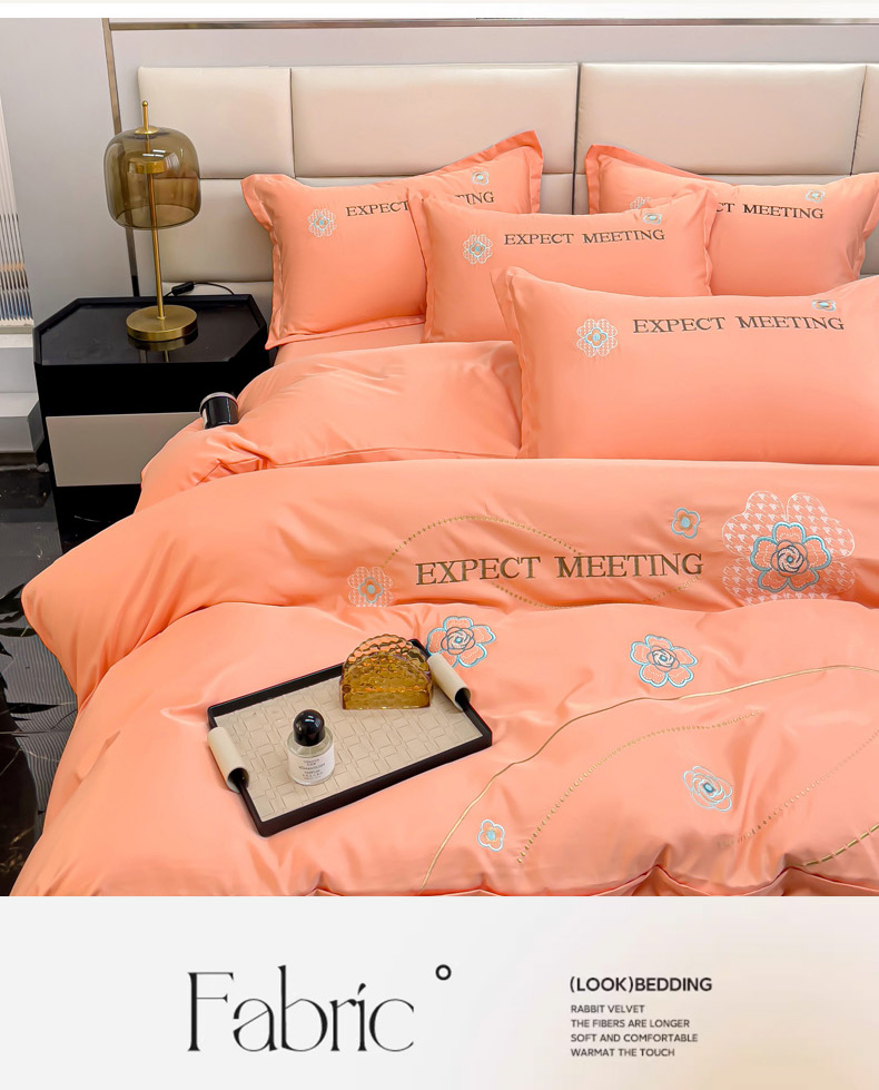商品名称:恋佳居 2025新款水洗真丝刺绣四件套 花漾-橘色