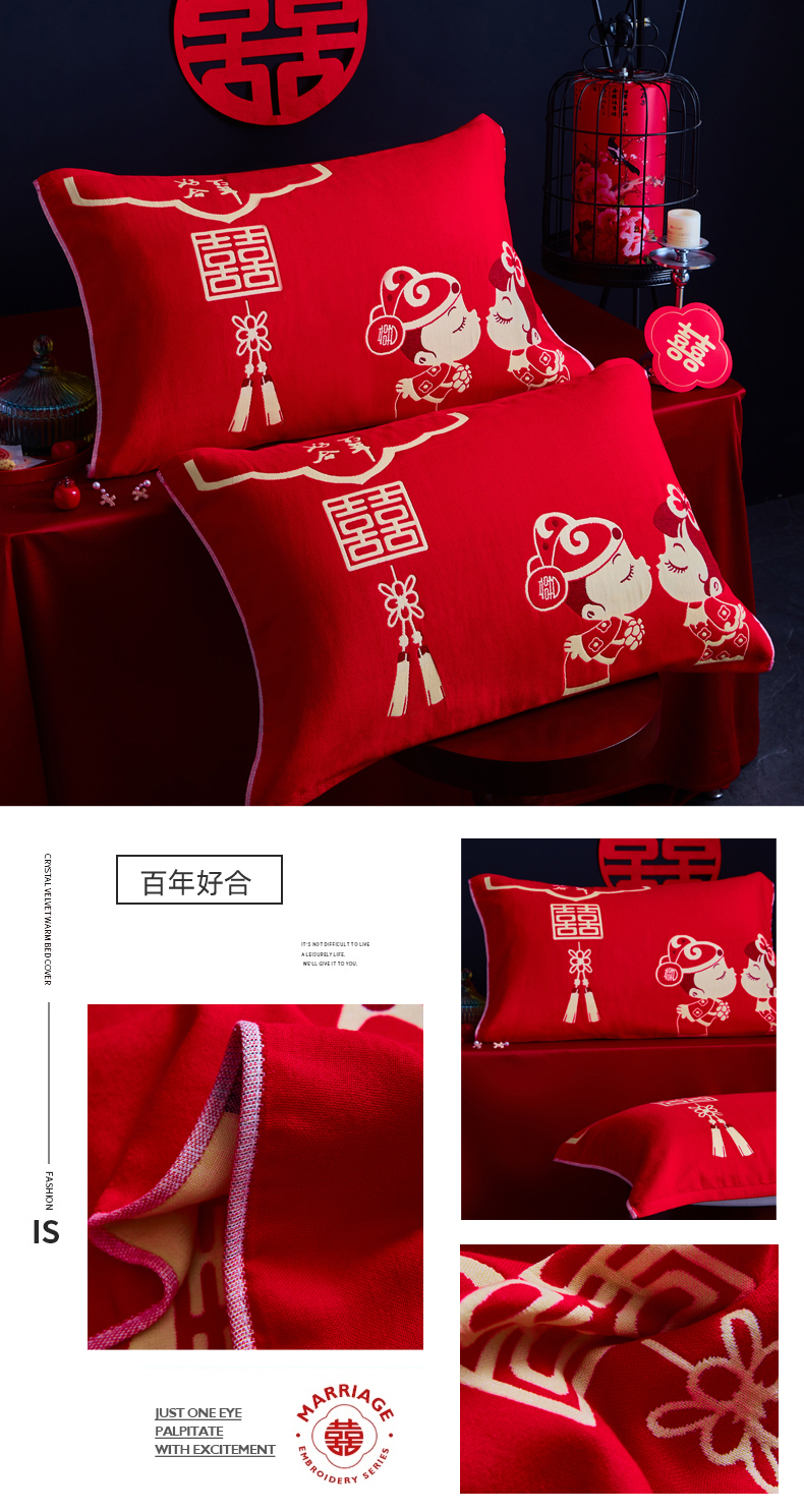 (总)美宜家 2025新款四层全棉纱布婚庆枕巾枕套枕头,百年好合,吉祥如意,喜上眉梢,喜气洋洋,喜结良缘,喜结连理,心心相印,欢欢喜喜,浪漫爱情,双喜临门,真爱永恒,花好月圆