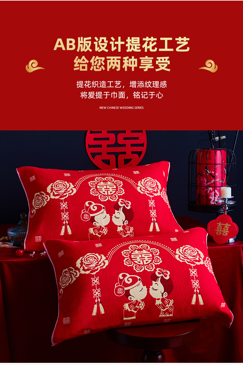 (总)美宜家 2025新款全棉毛圈防滑隔脏婚庆老式全棉枕巾,喜上加喜,幸福美满 ,永结同心,鸳鸯福禄