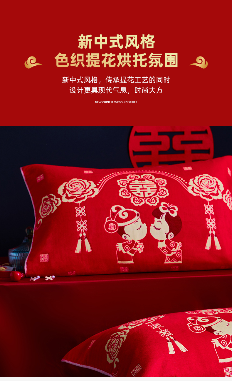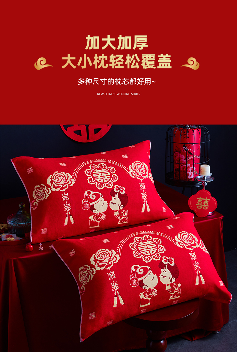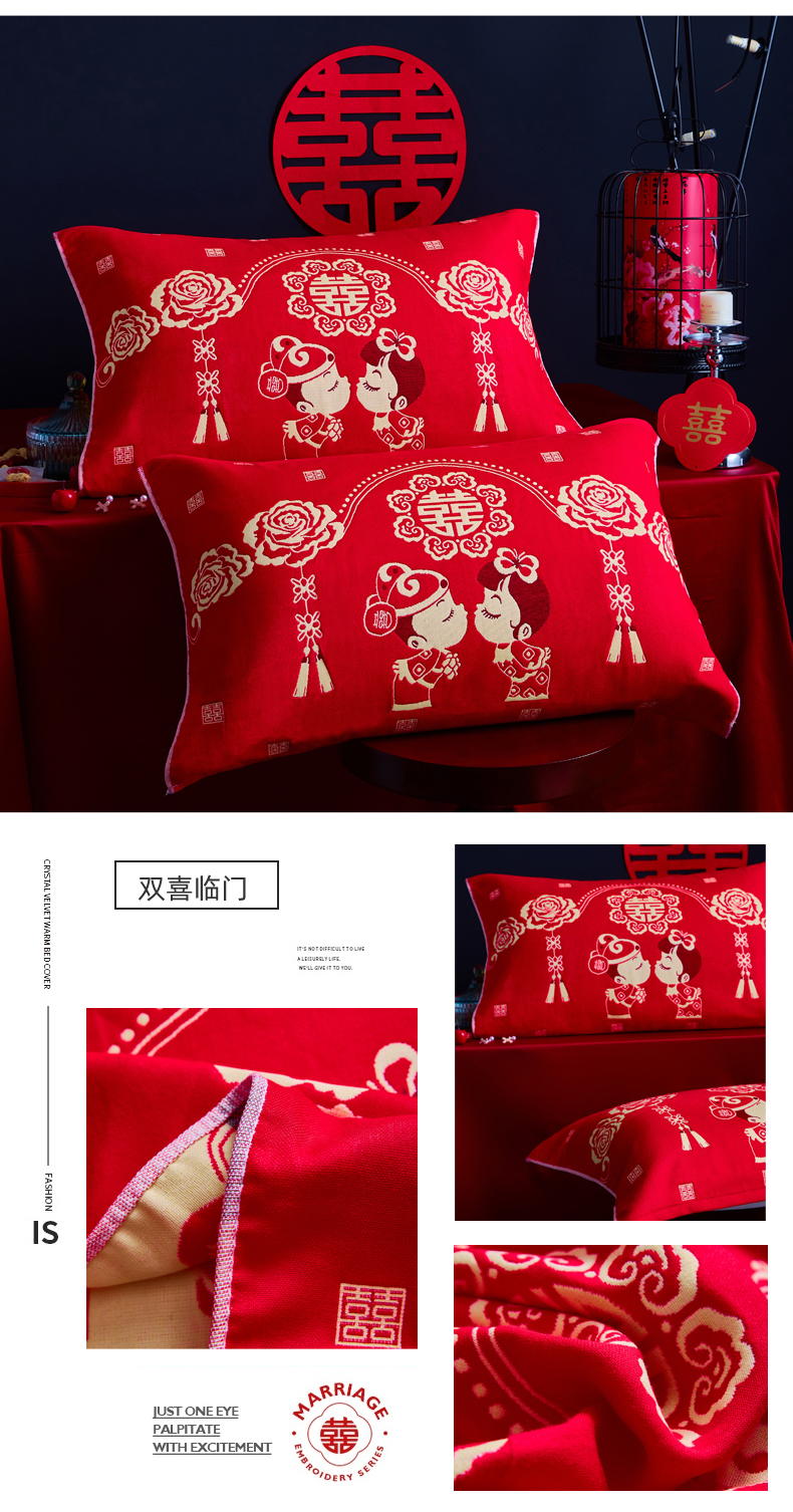 (总)美宜家 2025新款四层全棉纱布婚庆枕巾枕套枕头,百年好合,吉祥如意,喜上眉梢,喜气洋洋,喜结良缘,喜结连理,心心相印,欢欢喜喜,浪漫爱情,双喜临门,真爱永恒,花好月圆