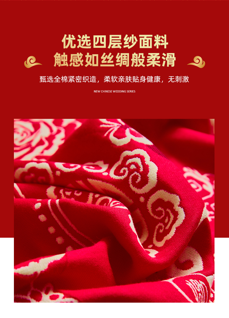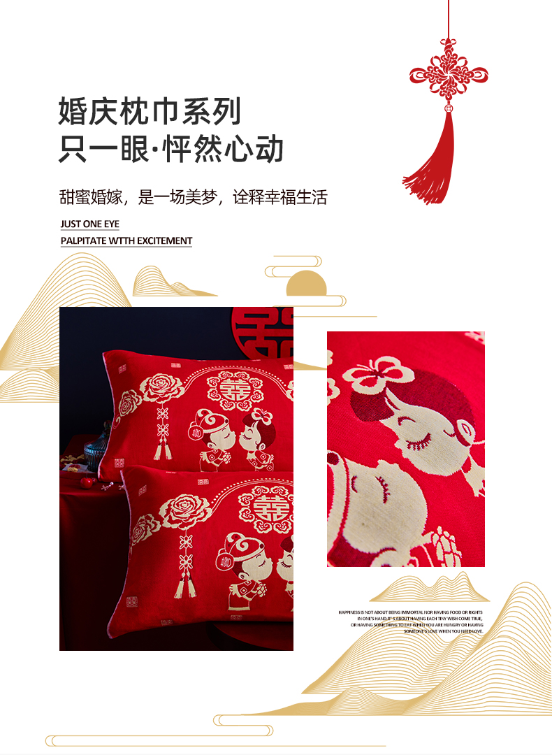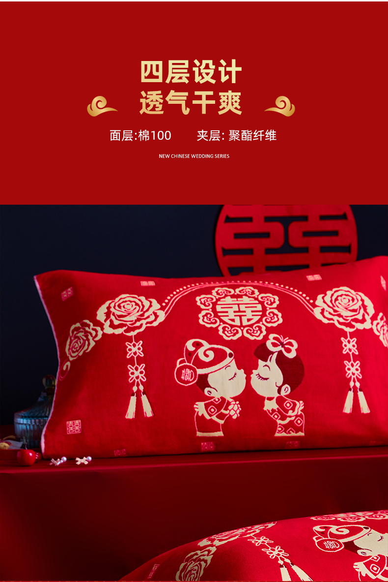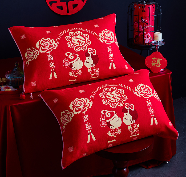 (总)美宜家 2025新款四层全棉纱布婚庆枕巾枕套枕头,百年好合,吉祥如意,喜上眉梢,喜气洋洋,喜结良缘,喜结连理,心心相印,欢欢喜喜,浪漫爱情,双喜临门,真爱永恒,花好月圆