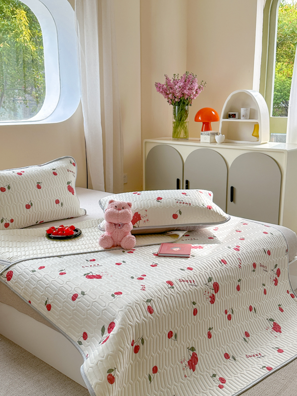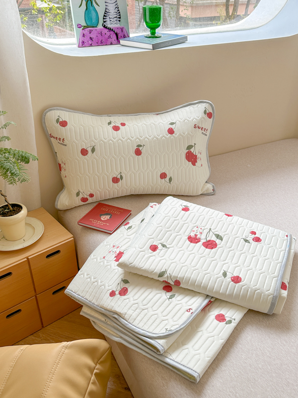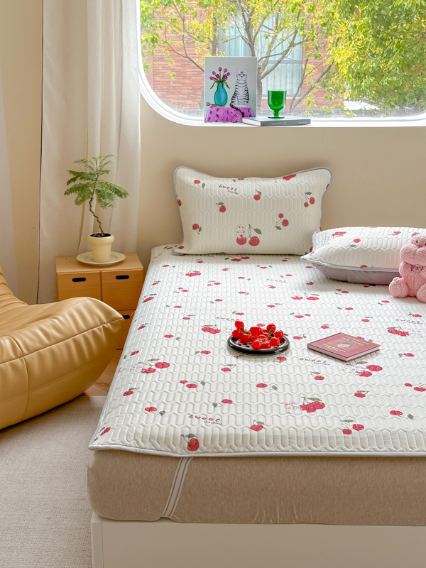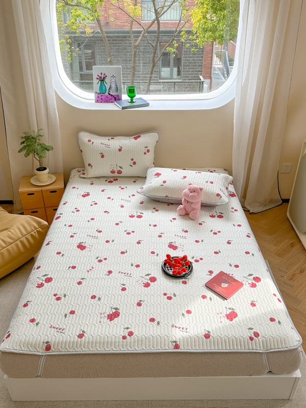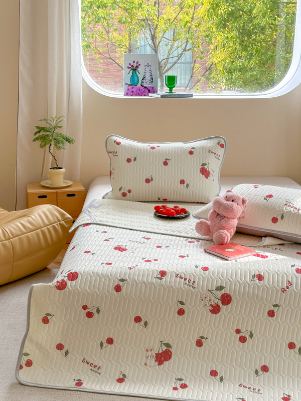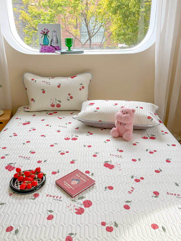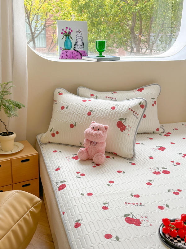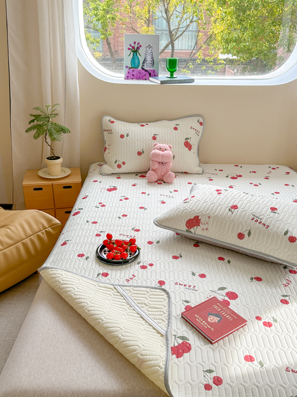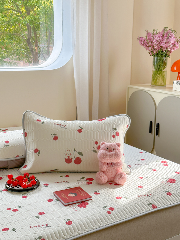 慕尚家纺 2025新款凉感丝印花乳胶凉席 樱桃小兔