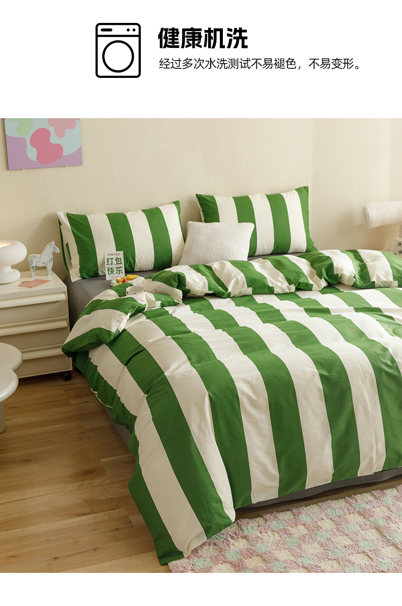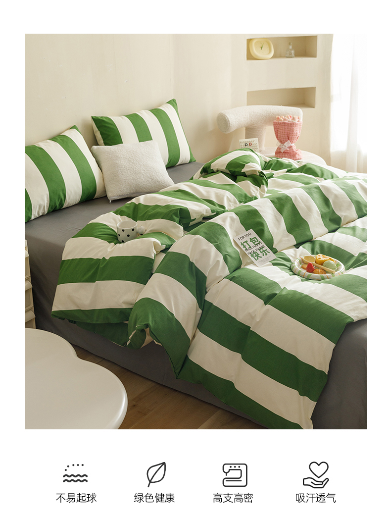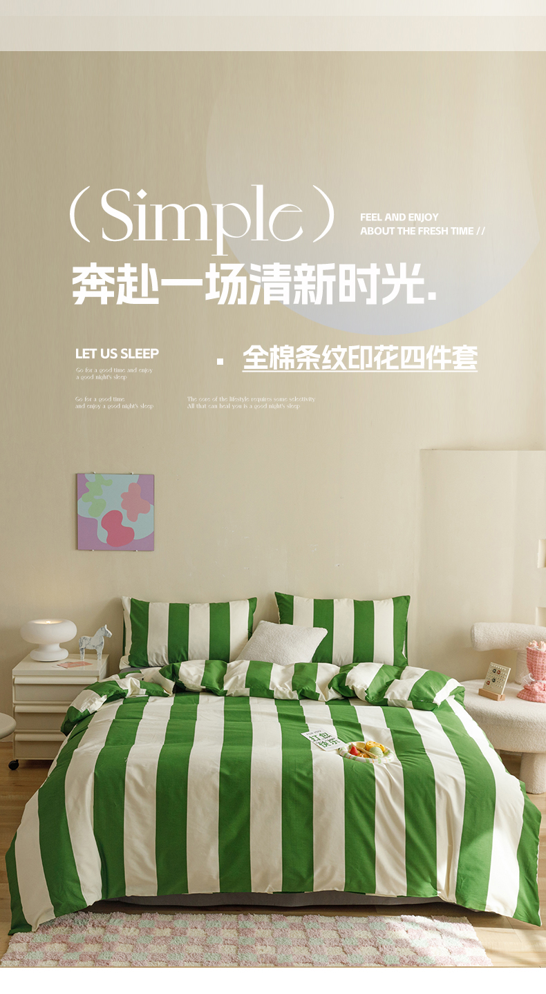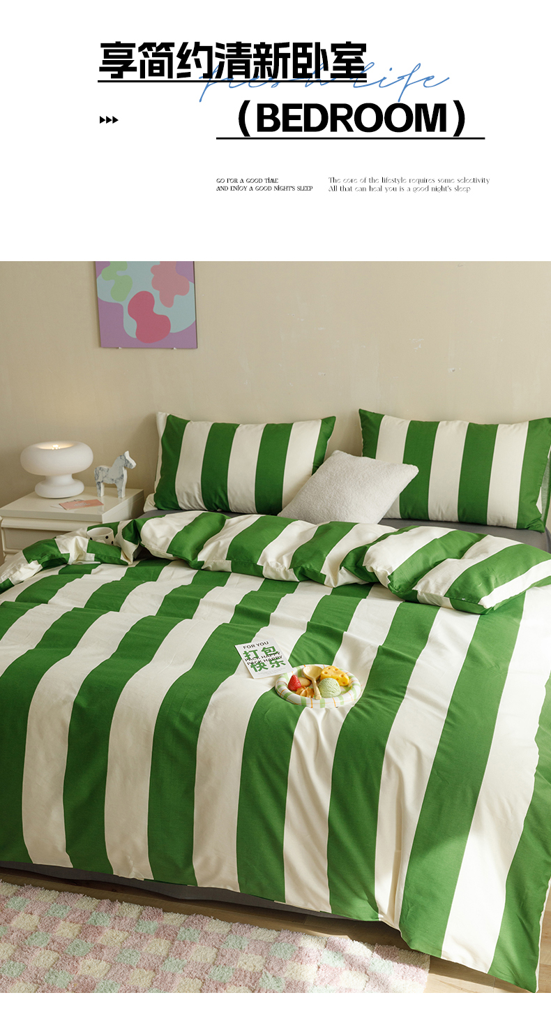 网客家纺 2024新款全棉条纹印花四件套 临西-绿
