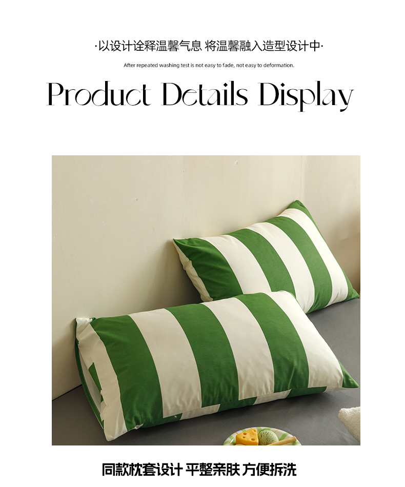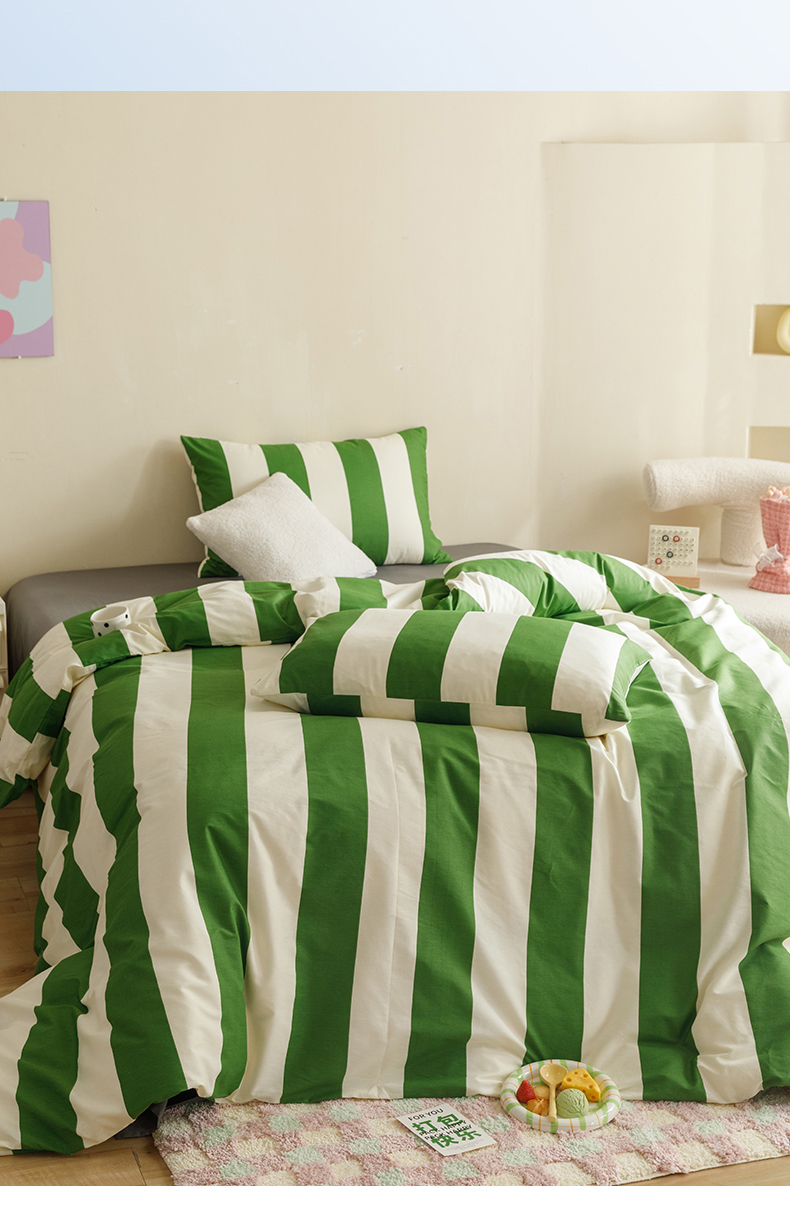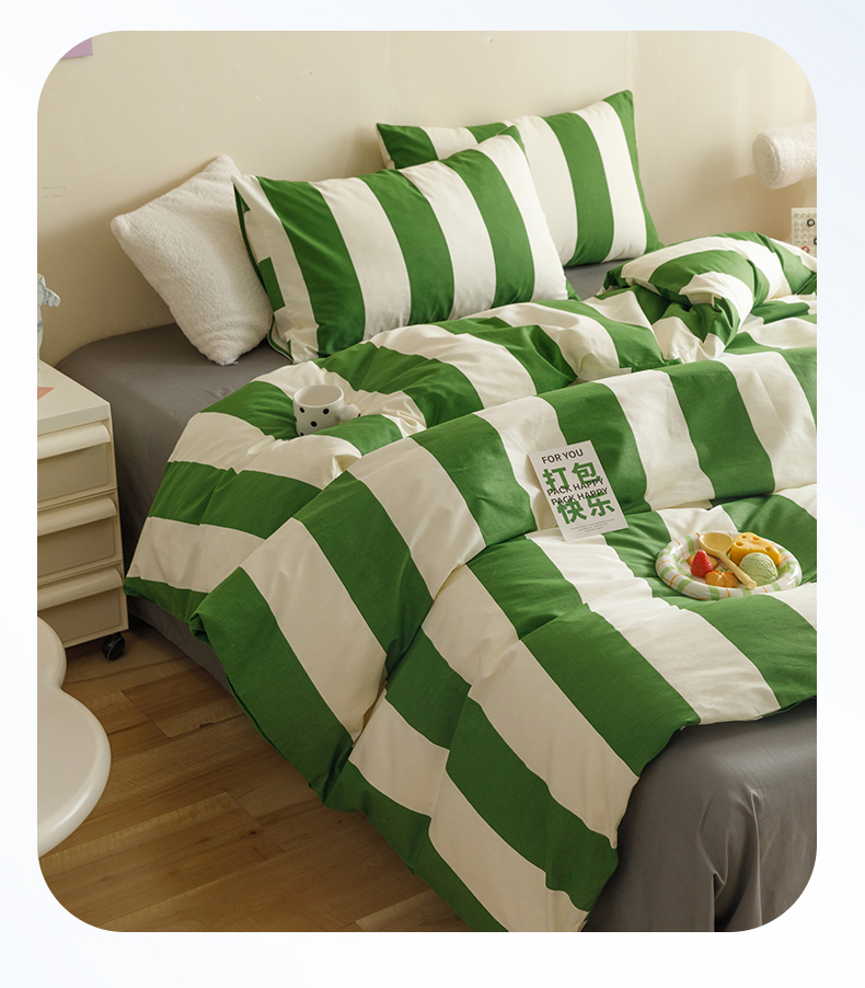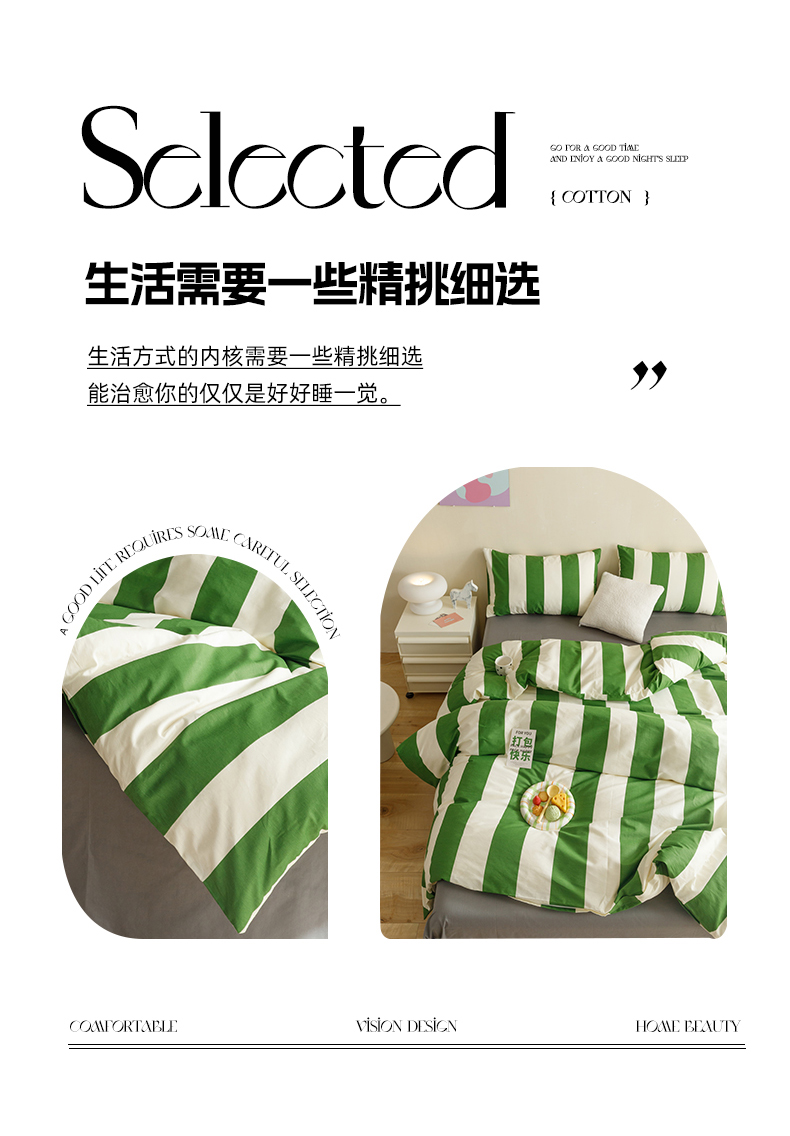 网客家纺 2024新款全棉条纹印花四件套 临西-绿