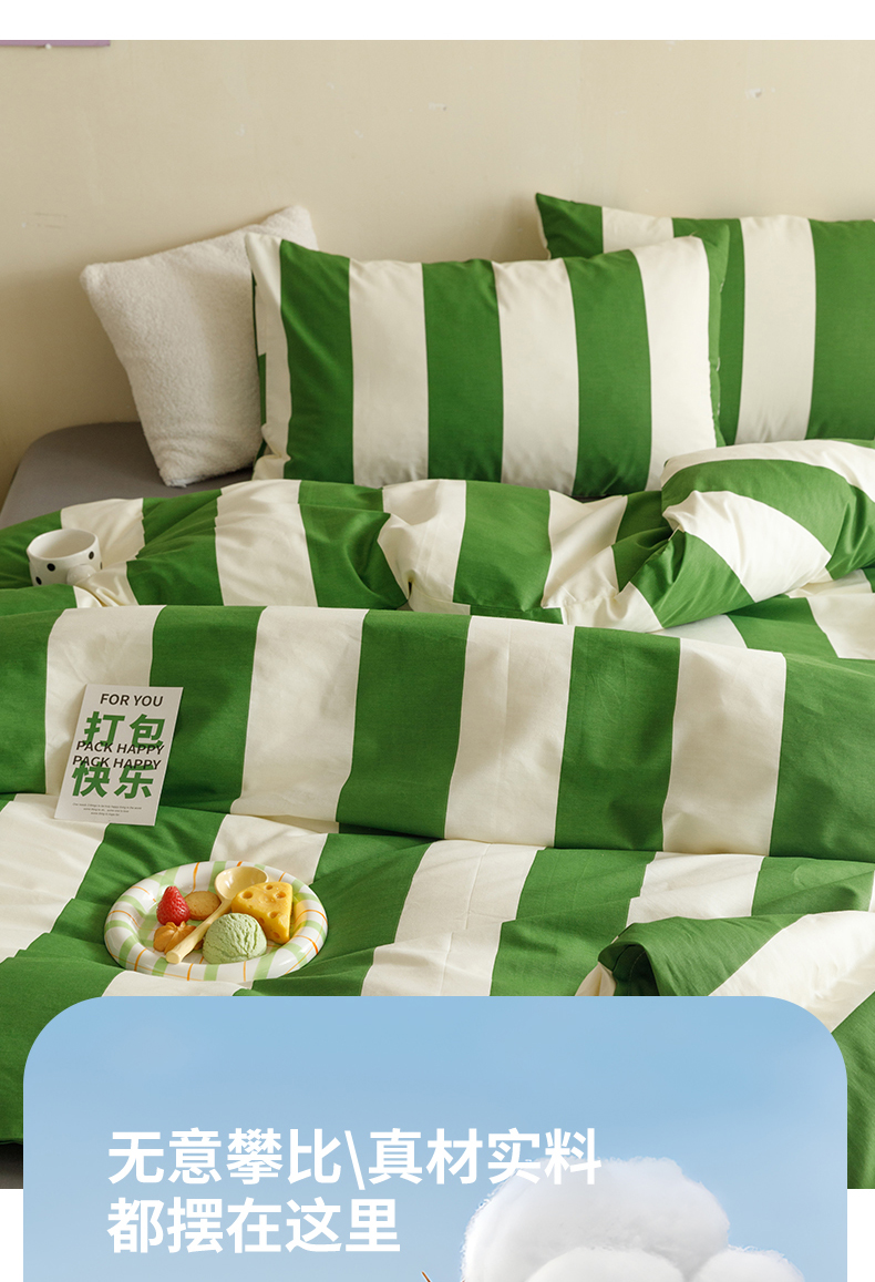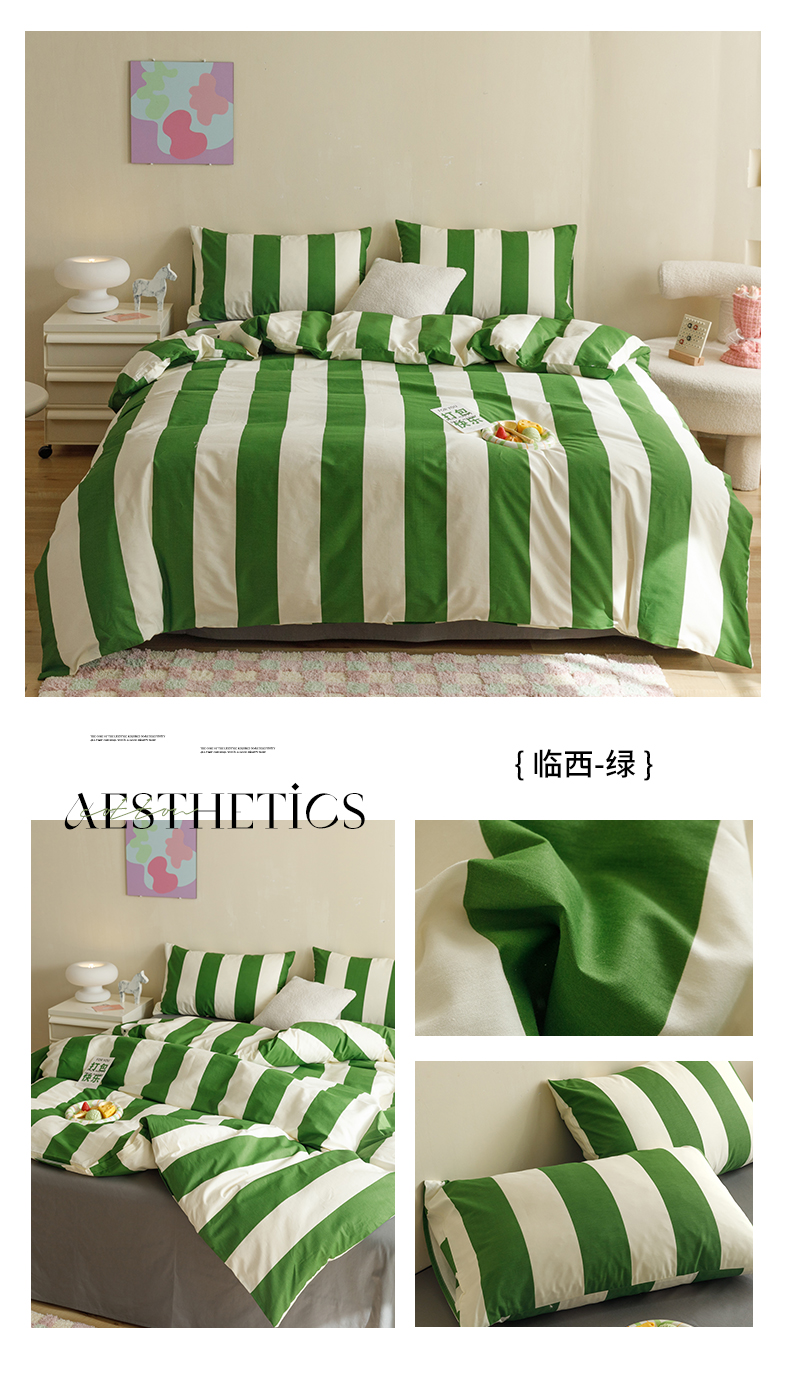 商品名称:网客家纺 2024新款全棉条纹印花四件套 临西-绿