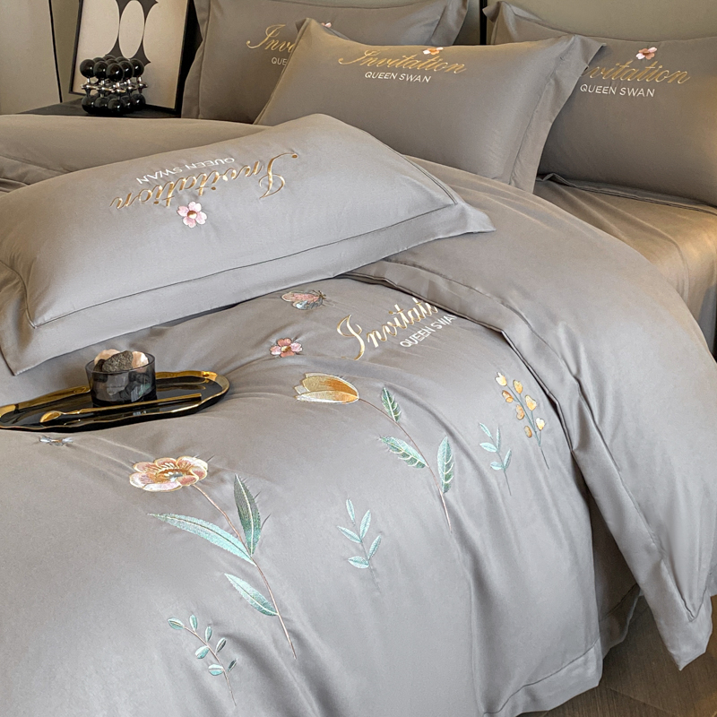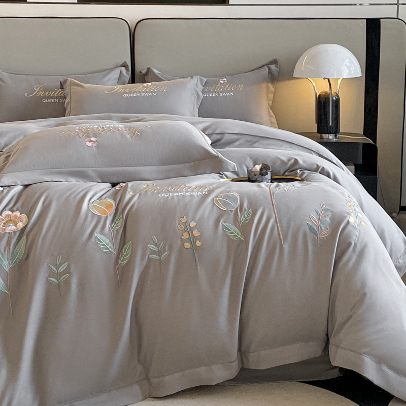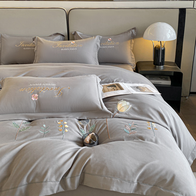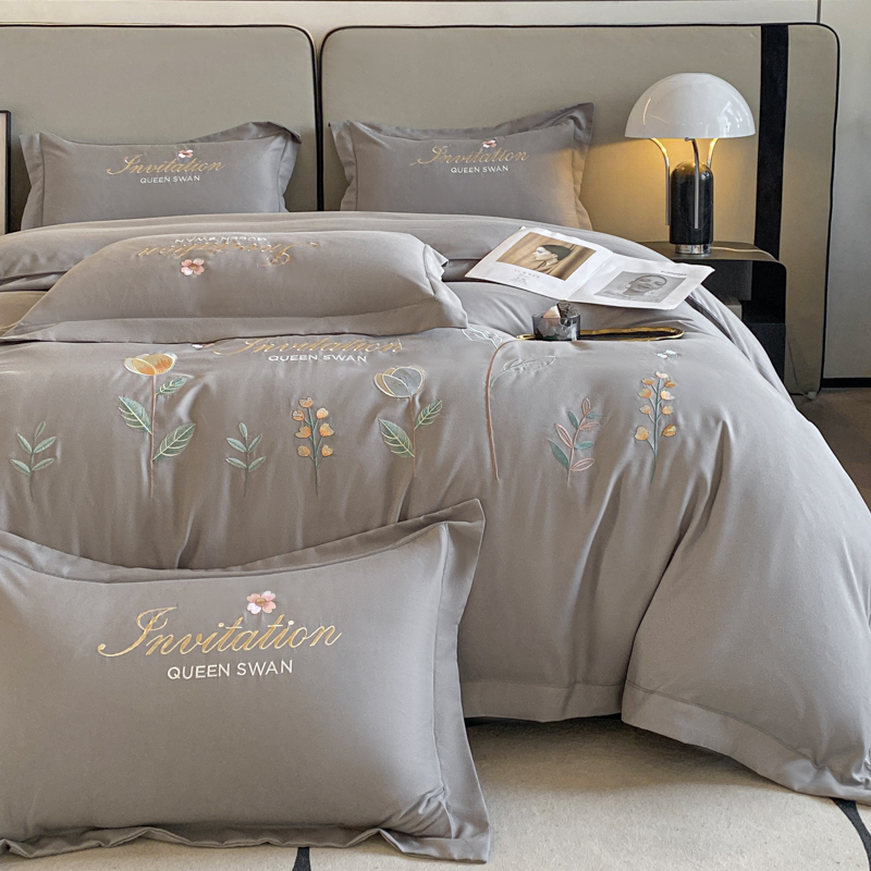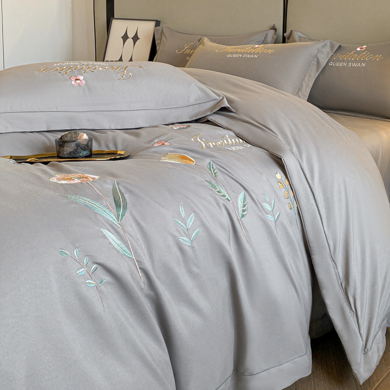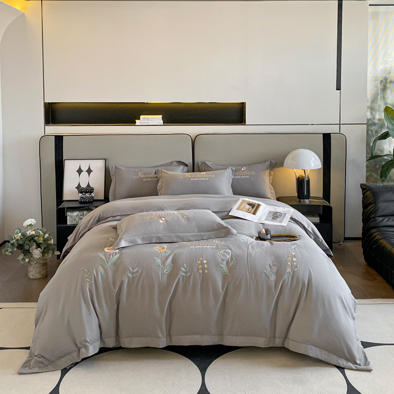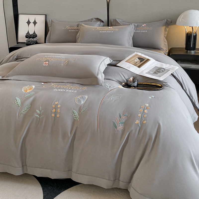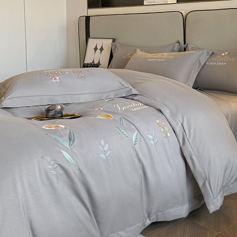商品名称:凯艾玲 2024新款简约轻奢磨毛细斜纹四件套-邂逅 灰色