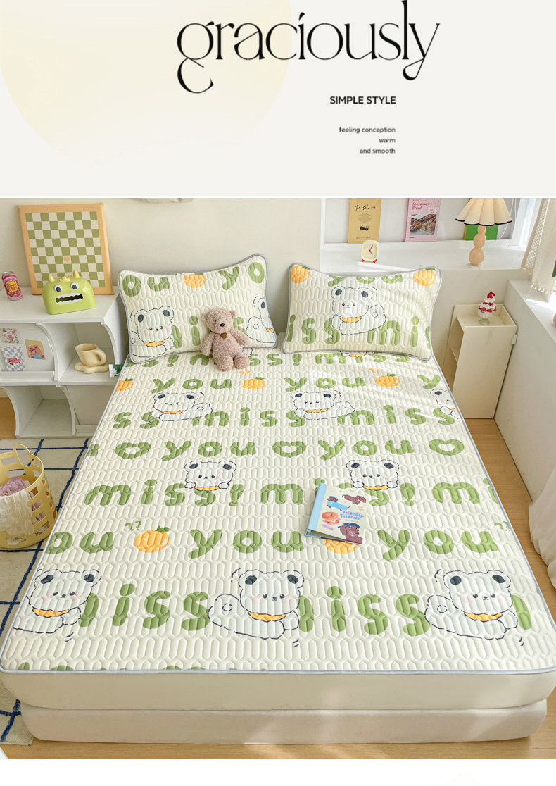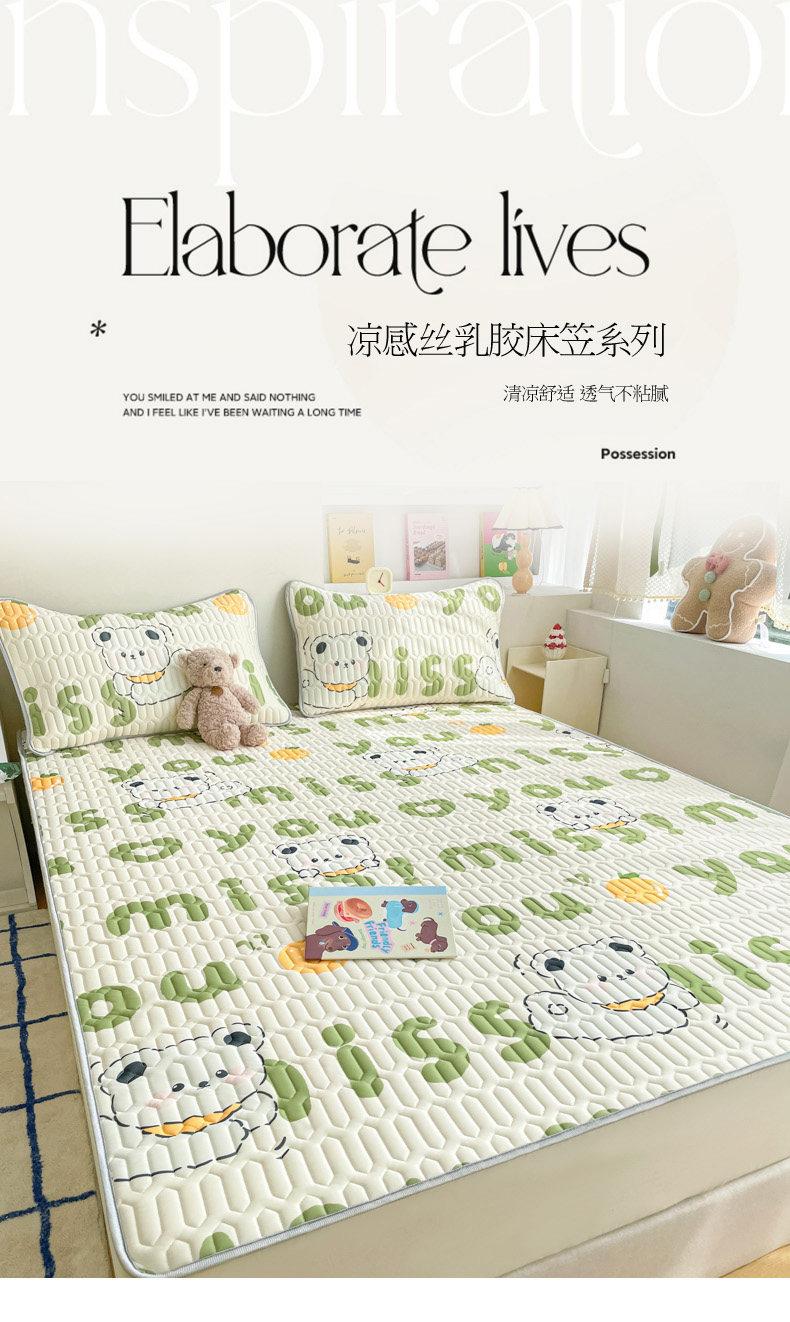 2024新款印花小清新床笠款乳胶凉席系列 字母小熊