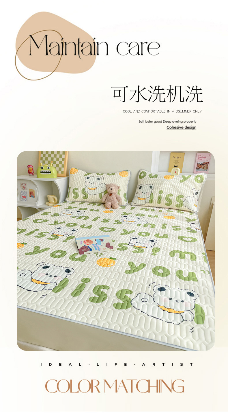 商品名称:2024新款印花小清新床笠款乳胶凉席系列 字母小熊