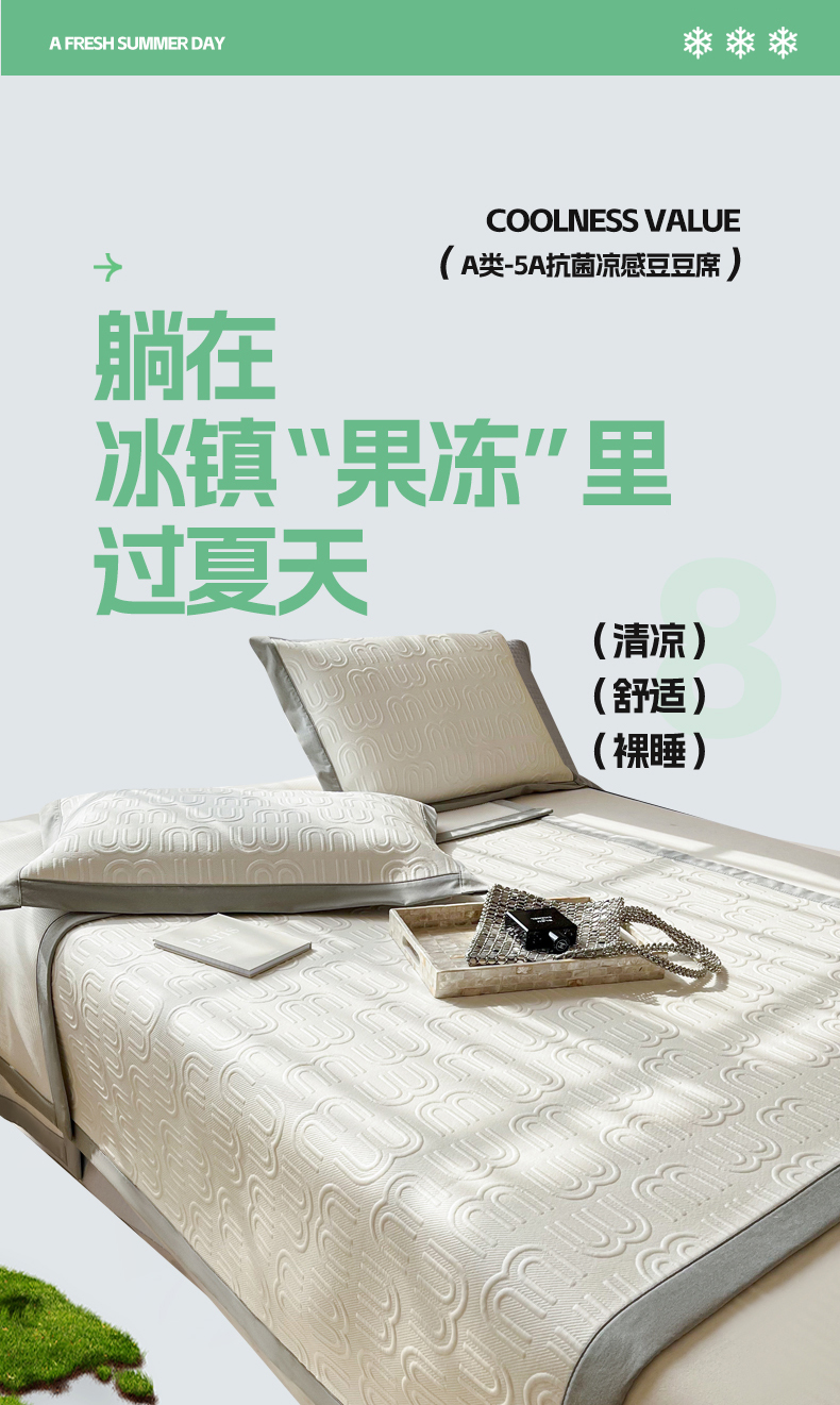 商品名称:全季家居 2024新款5A速冷PE简约系列凉豆豆席 缪缪-米白-床席款