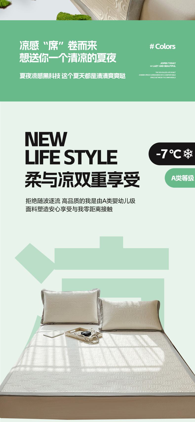 (总)2023全季家居纯色凉感肌理纹富士款冰丝凉席,富士款-丁香紫,富士款-墨绿,富士款-浅粉,富士款-浅咖,富士款-蔚蓝