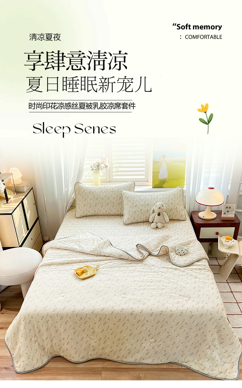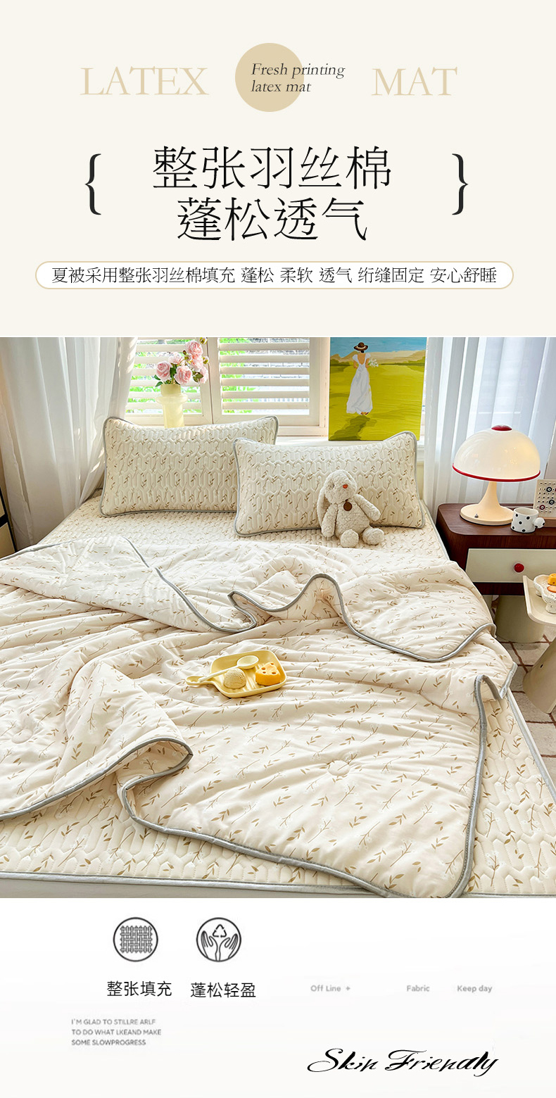 商品名称:慕澄家纺 2024新款小版印花0.5乳胶凉席夏被四件套 叶子青青