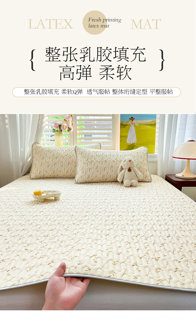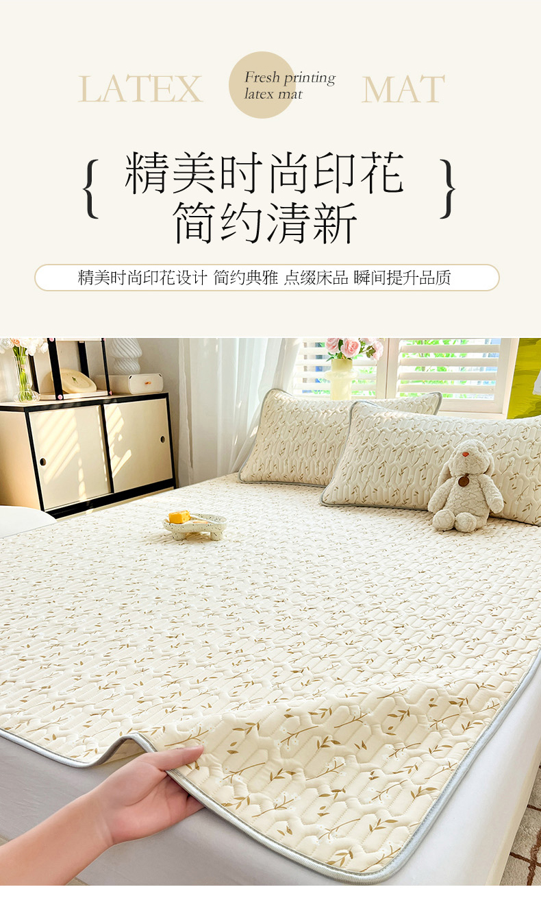慕澄家纺 2024新款小版印花0.5乳胶凉席夏被四件套 叶子青青