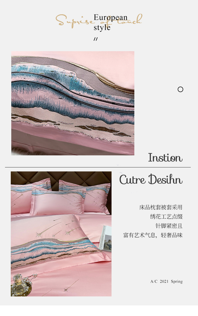 (总)红番天家居馆 2025新款全棉纯棉贡缎长绒棉手工捏折刺绣蕾丝四件套-觅春,觅春-夹心粉,觅春-午后清晨,觅春-云朵吐司
