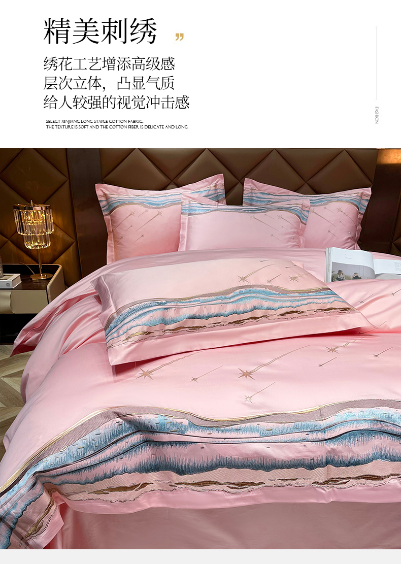(总)红番天家居馆 2025新款A类全棉水洗棉贴布绣四件套-太空行,太空行
