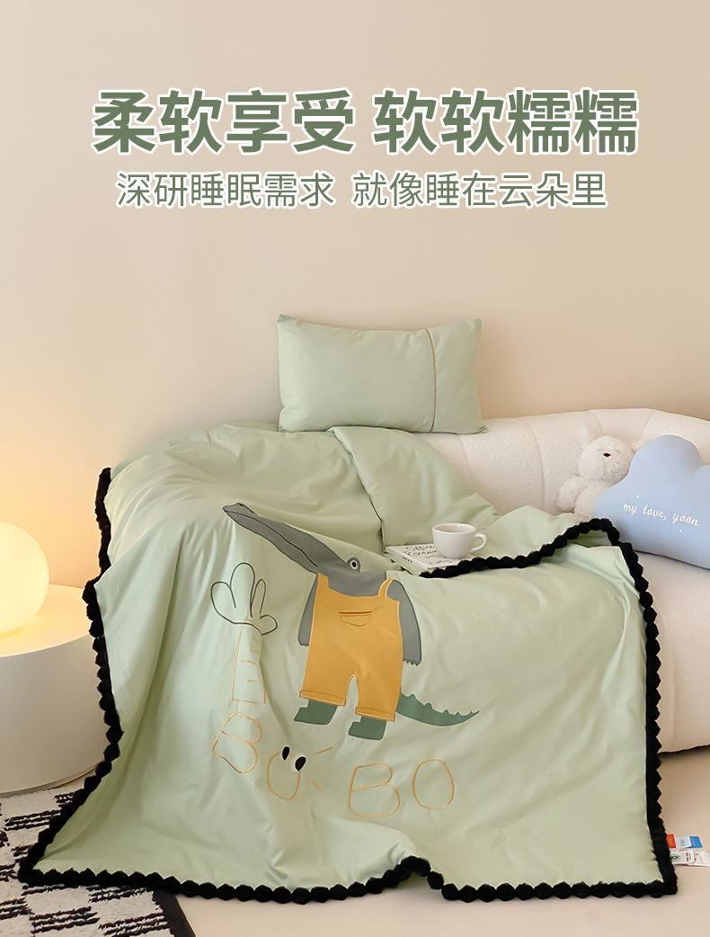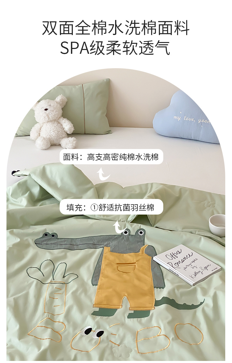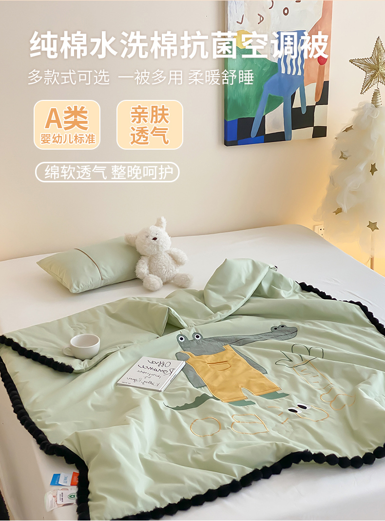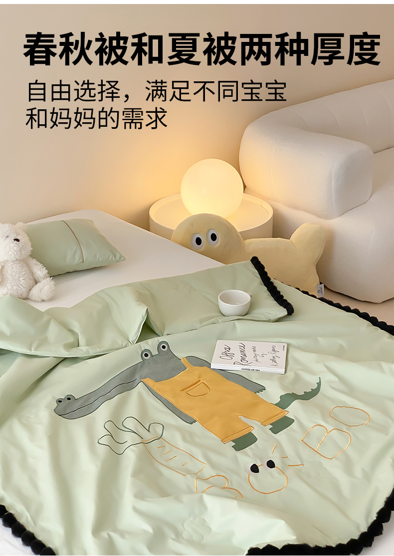 喜多兔儿童家纺 2024新品全棉水洗棉夏被空调被小安馨被子 绿色小鳄鱼