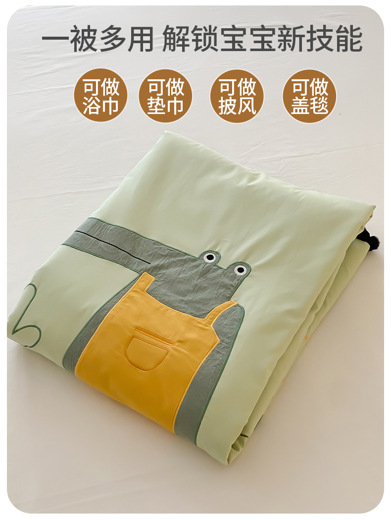 (总)喜多兔儿童家纺 2025春夏新款小软萌贴布绣纱布被,粉色软萌小兔,卡其色软萌小熊,蓝色软萌小象,绿色软萌恐龙,组合图仅供展示
