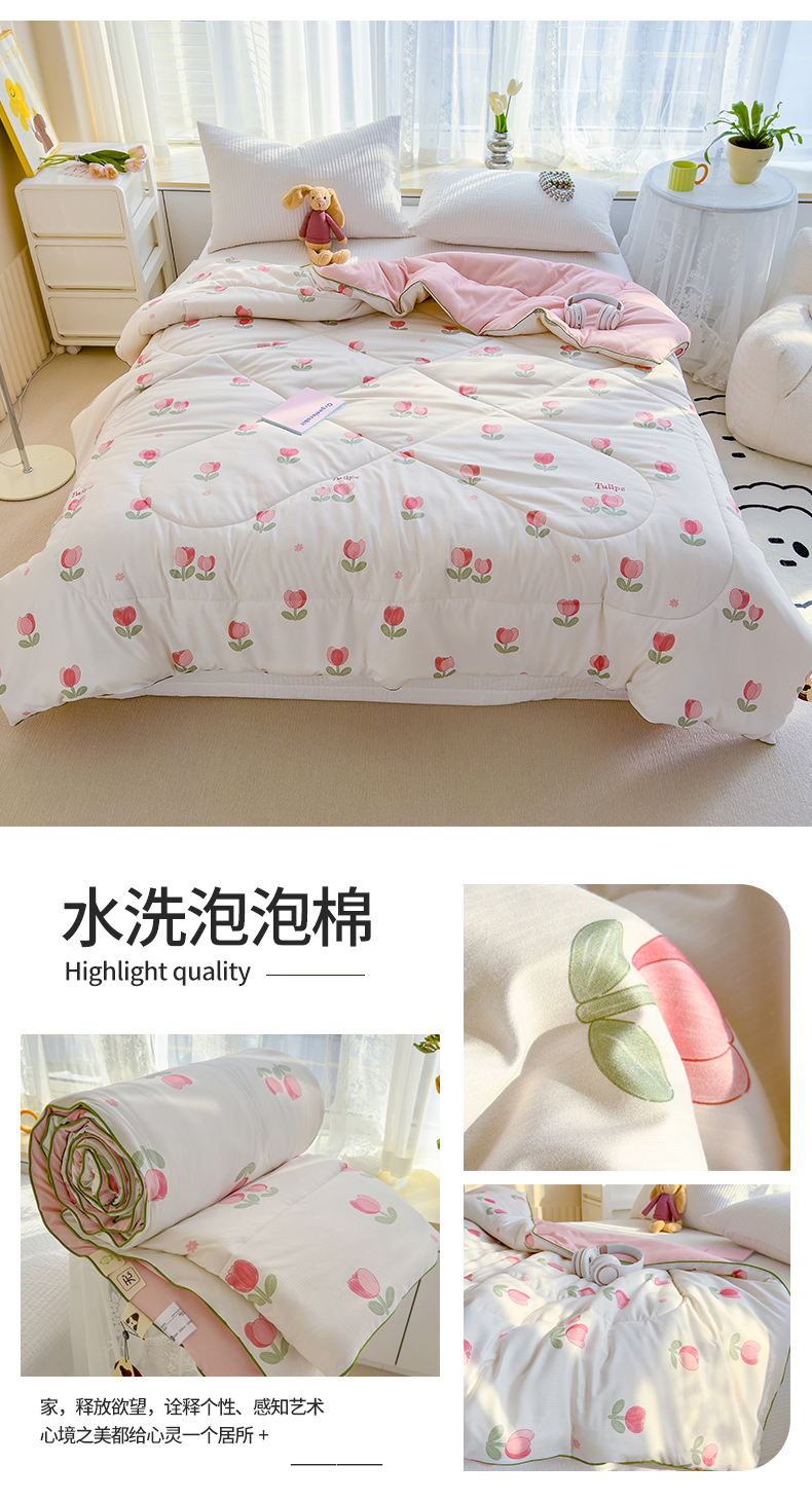 商品名称:花言狐语 2025新款A类水洗泡泡棉大豆纤维夏凉被 郁金香