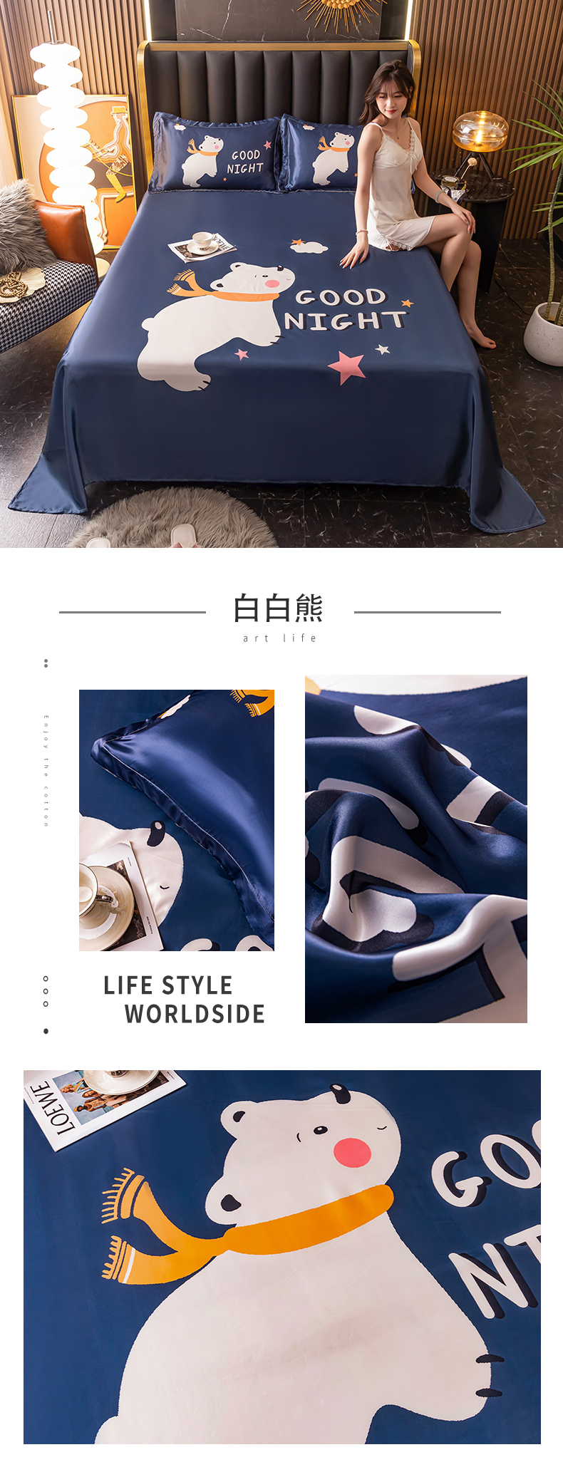商品名称:梦舒羽 2025新款大版可水洗冰丝床单宿舍床垫保护罩三件套 白白熊