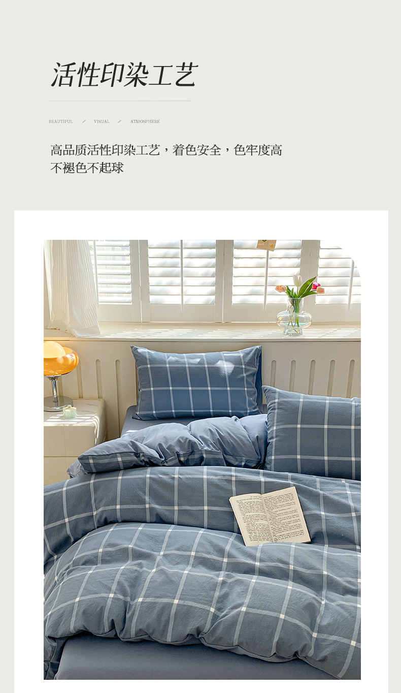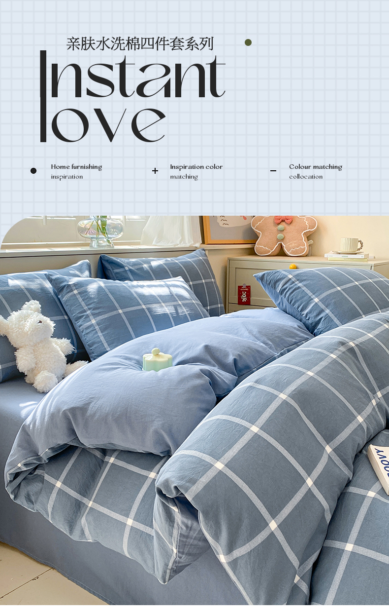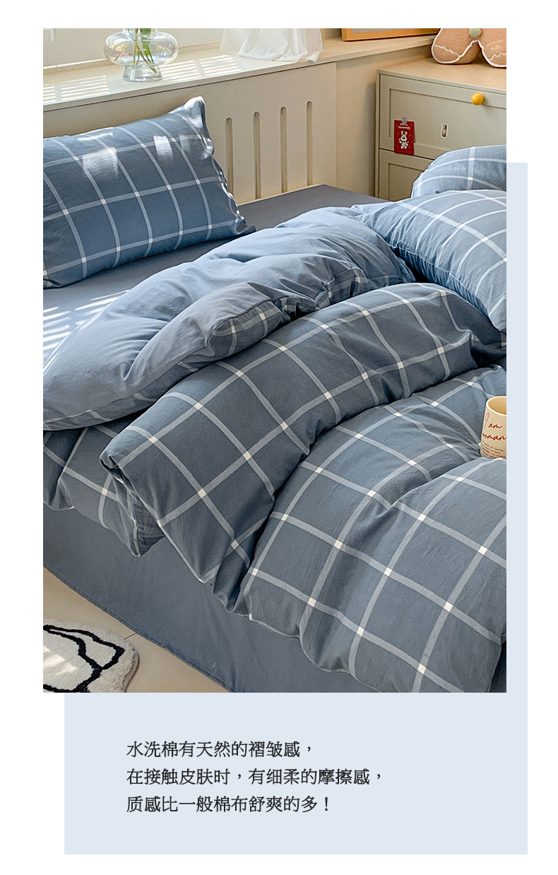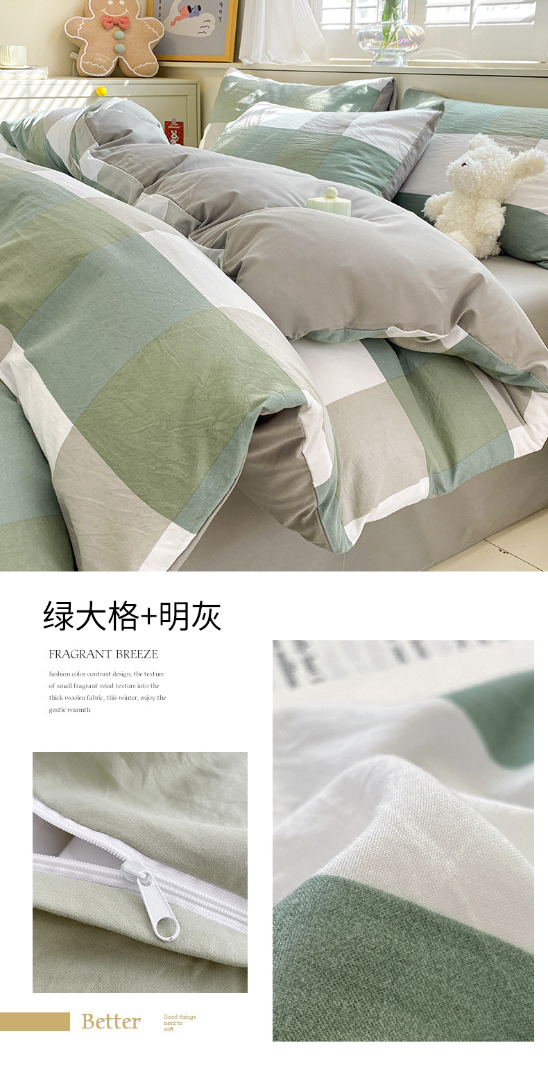 当前位置: 91家纺网 > 商品网购 > 床品套件 > 四件套 > 水洗棉四件套 > 盛秋家纺 2025新款亲肤格子水洗棉四件套 绿大格+明灰