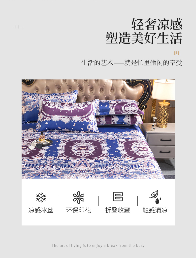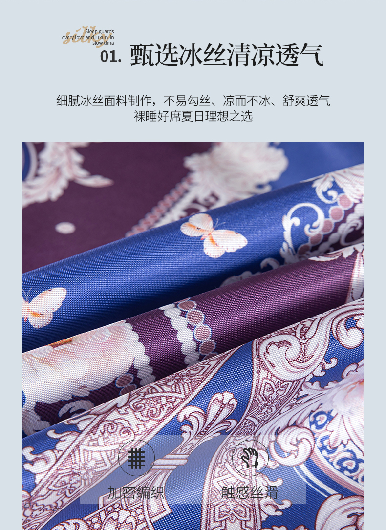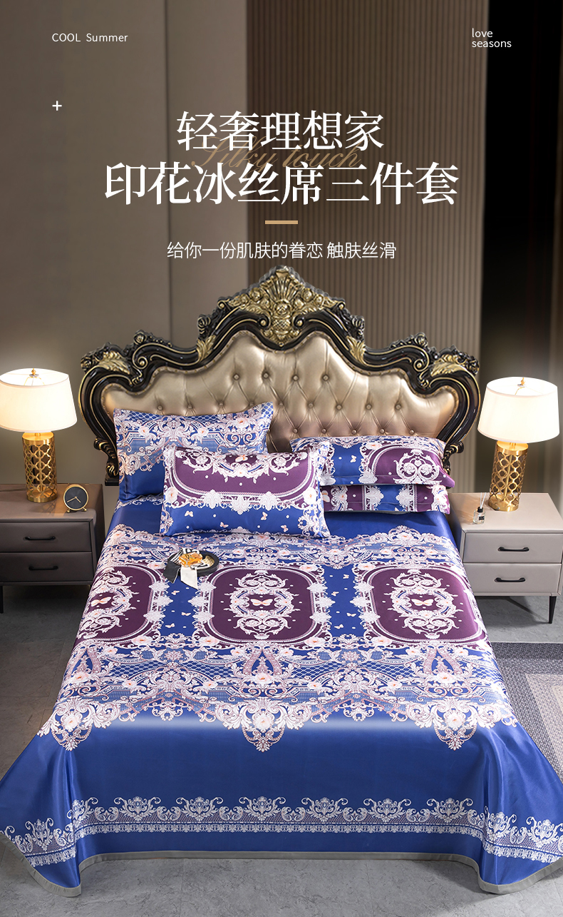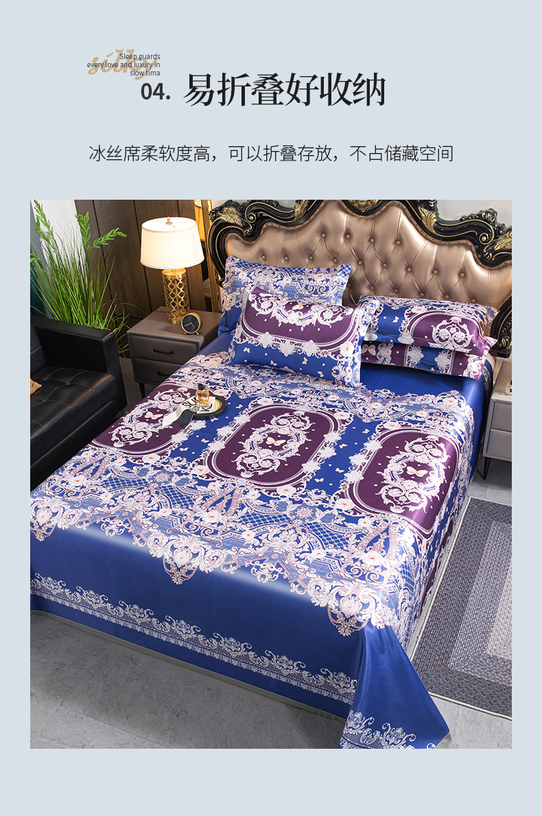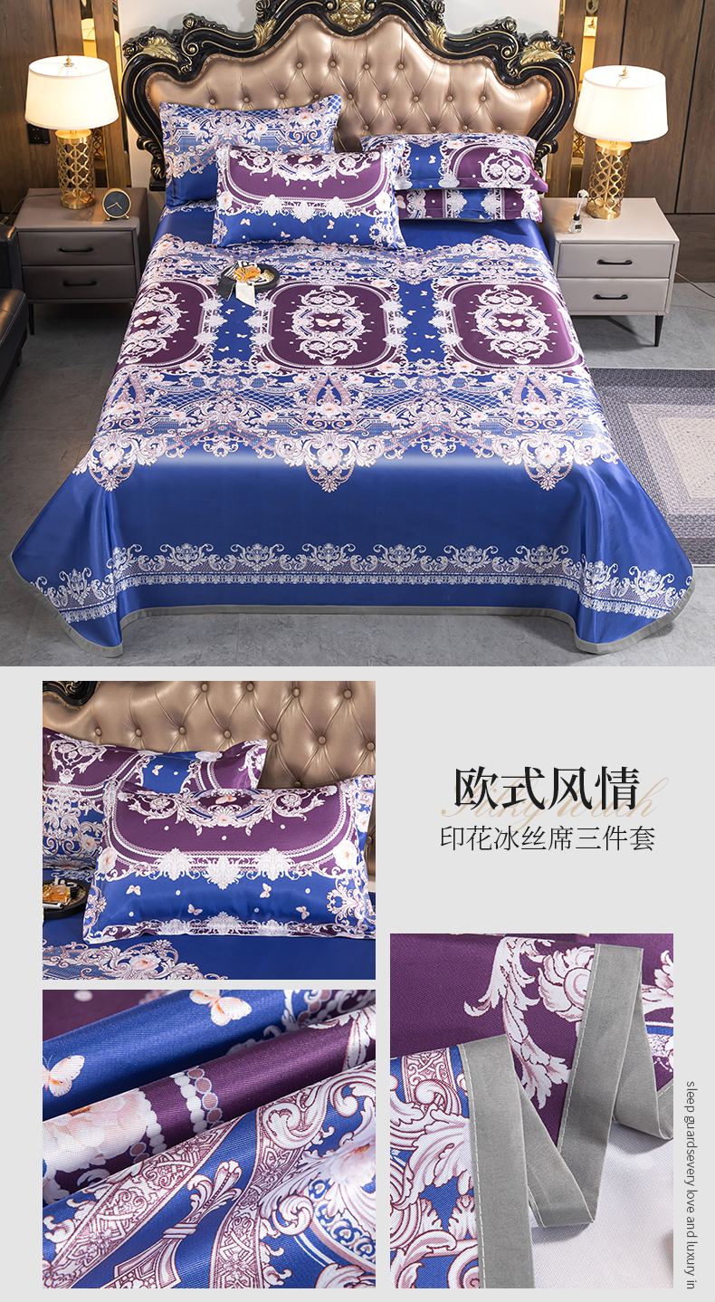 商品名称:梵克保罗 2024新款印花冰丝凉席套件-系列一 欧式风情