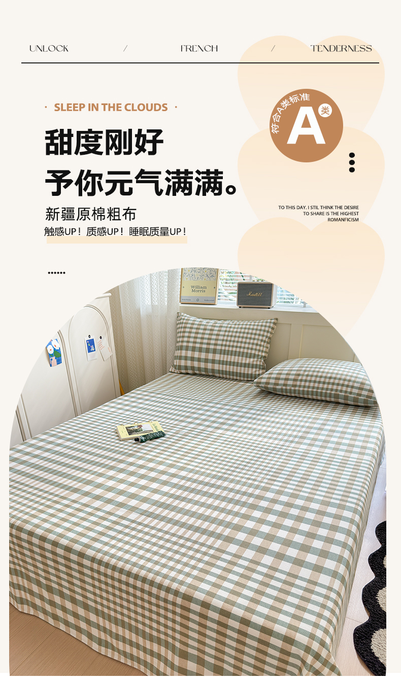 当前位置: 91家纺网 > 商品网购 > 床品套件 > 三件套 > 吉象家纺 2024新款老粗布三件套-床单款 绿格