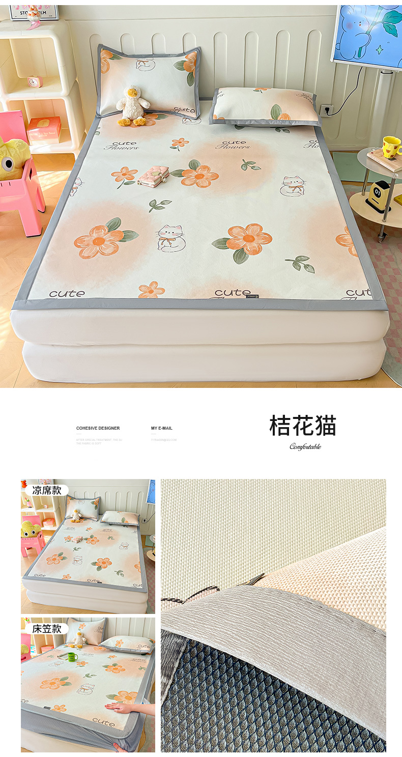 当前位置: 91家纺网 > 商品网购 > 床上用品 > 凉席 > 藤席 > 安哆啦家纺 2024新款A类冰藤印花凉席 桔花猫-床笠款