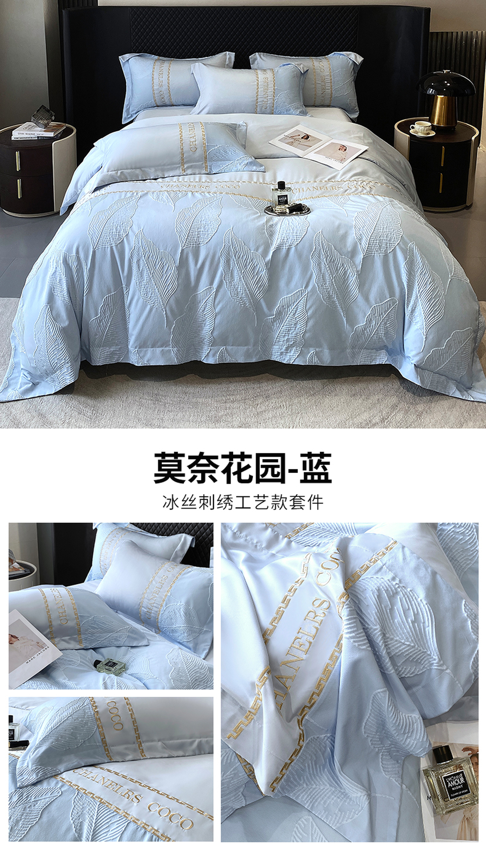 商品名称:优悦生活馆 2024新款新款冰丝绣花四件套-莫奈花园 莫奈花园-蓝