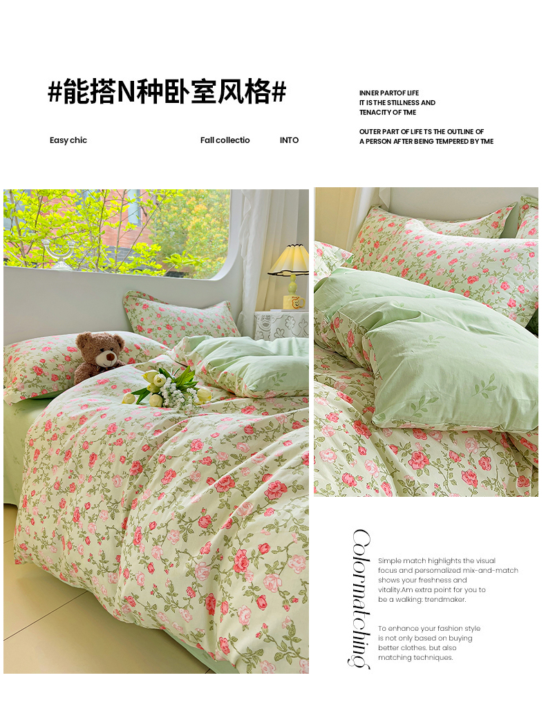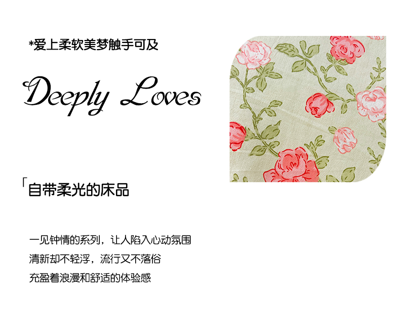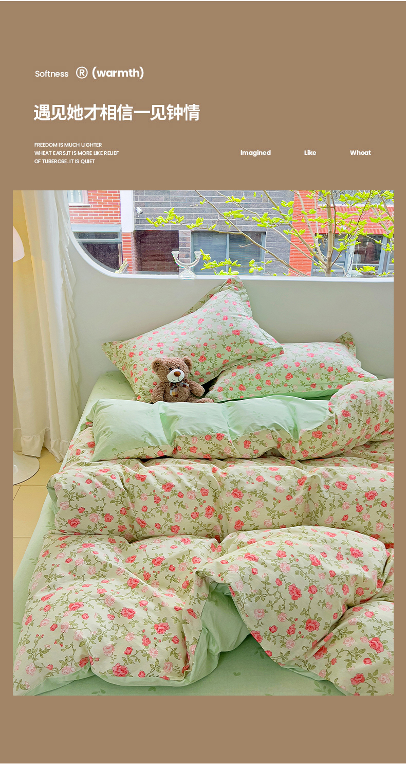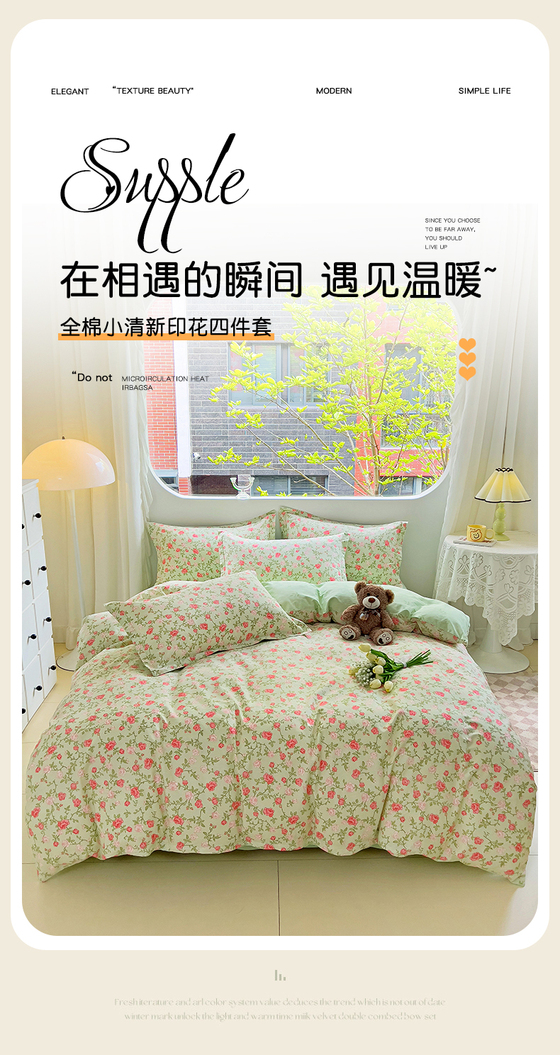 暖芯优选 204新款直播爆款全棉-ins印花系列四件套纯棉三件套床单床笠 初恋旋律