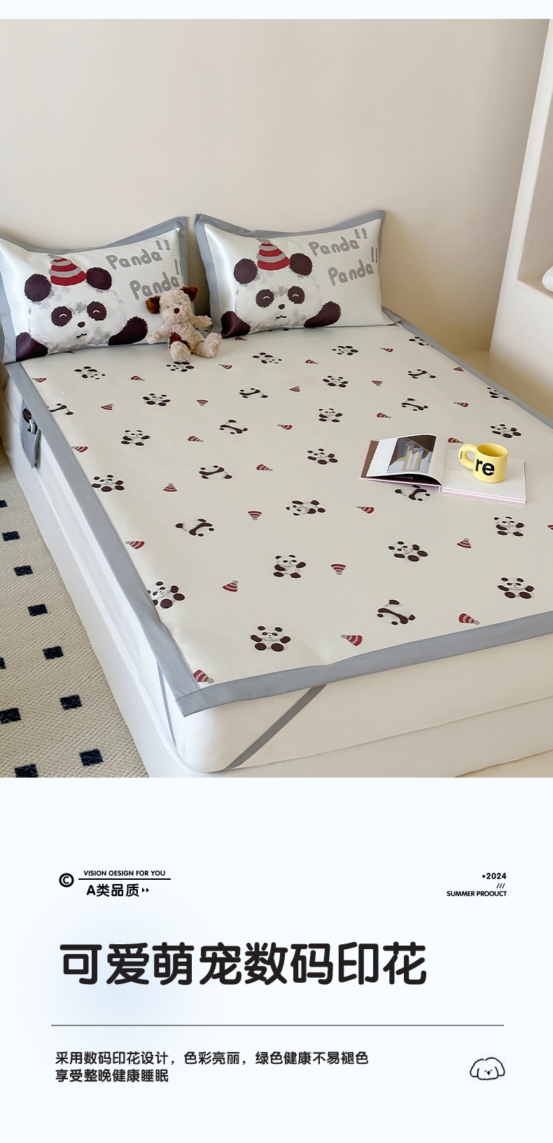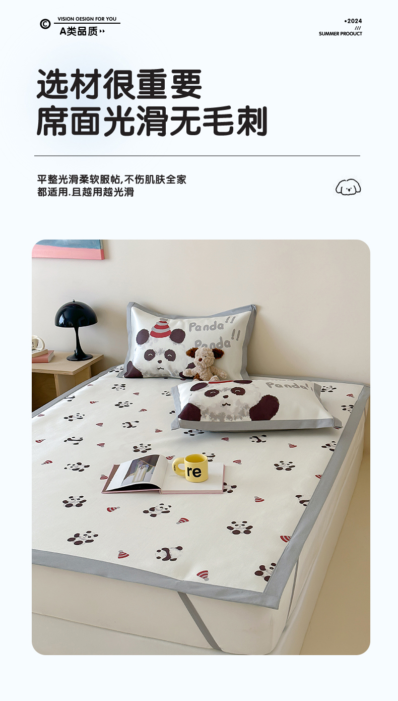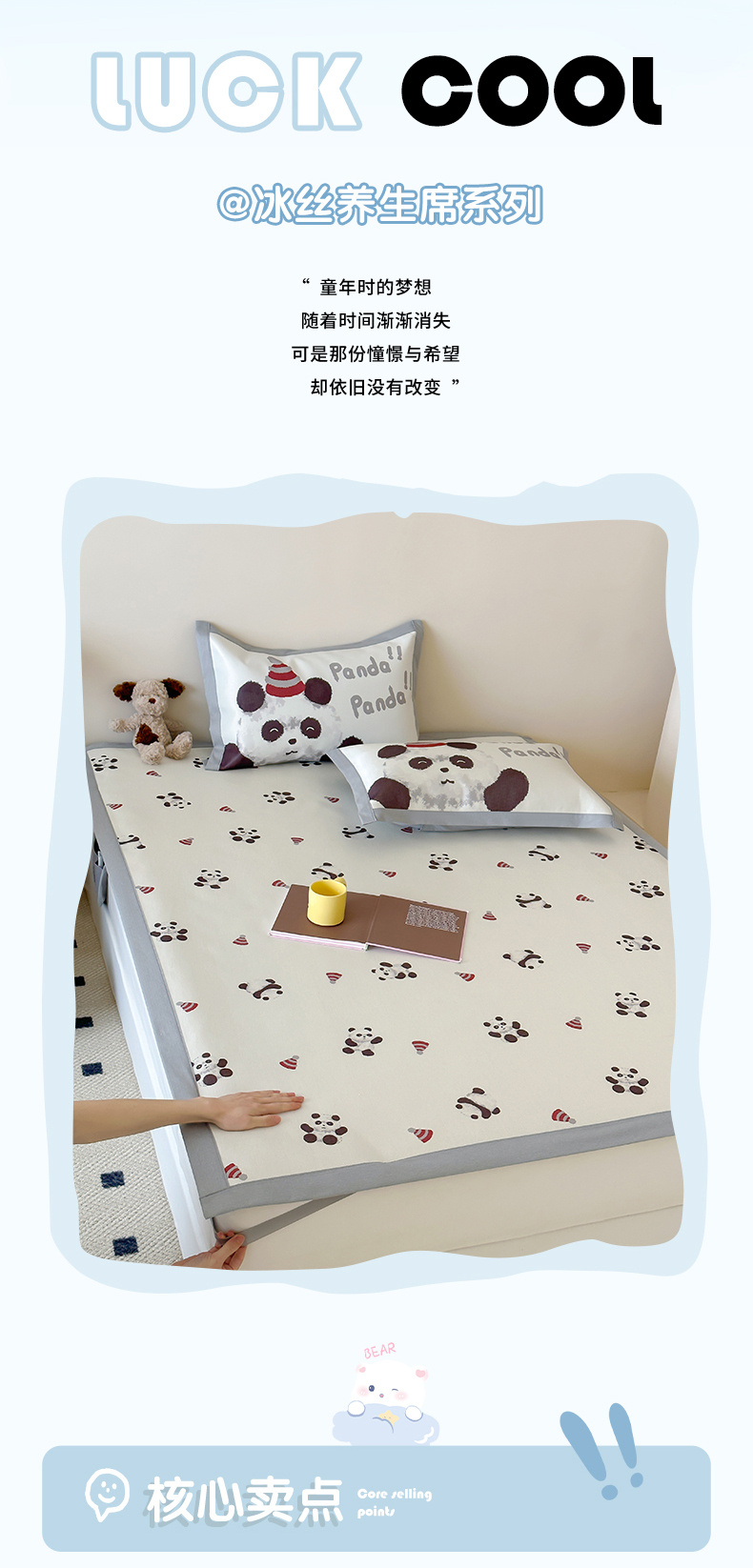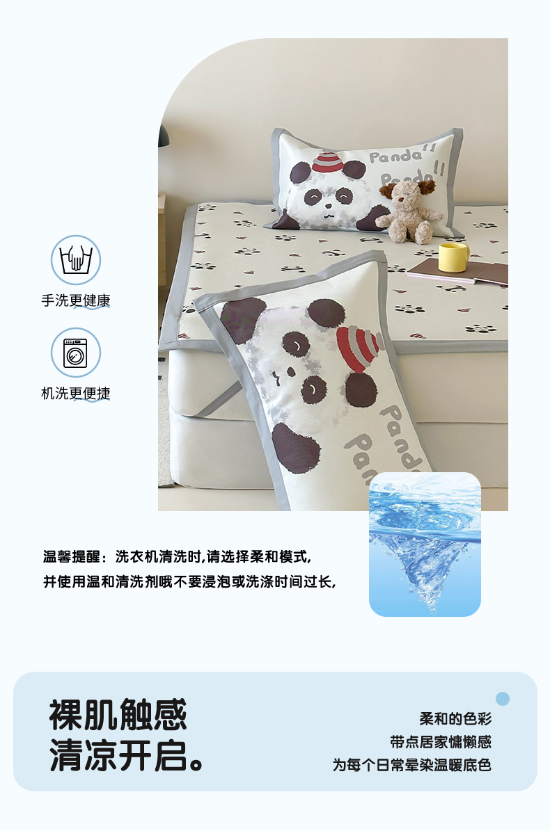 商品名称:圆岛 2024新款A类900D萌宠系列冰丝养生席 熊猫崽崽