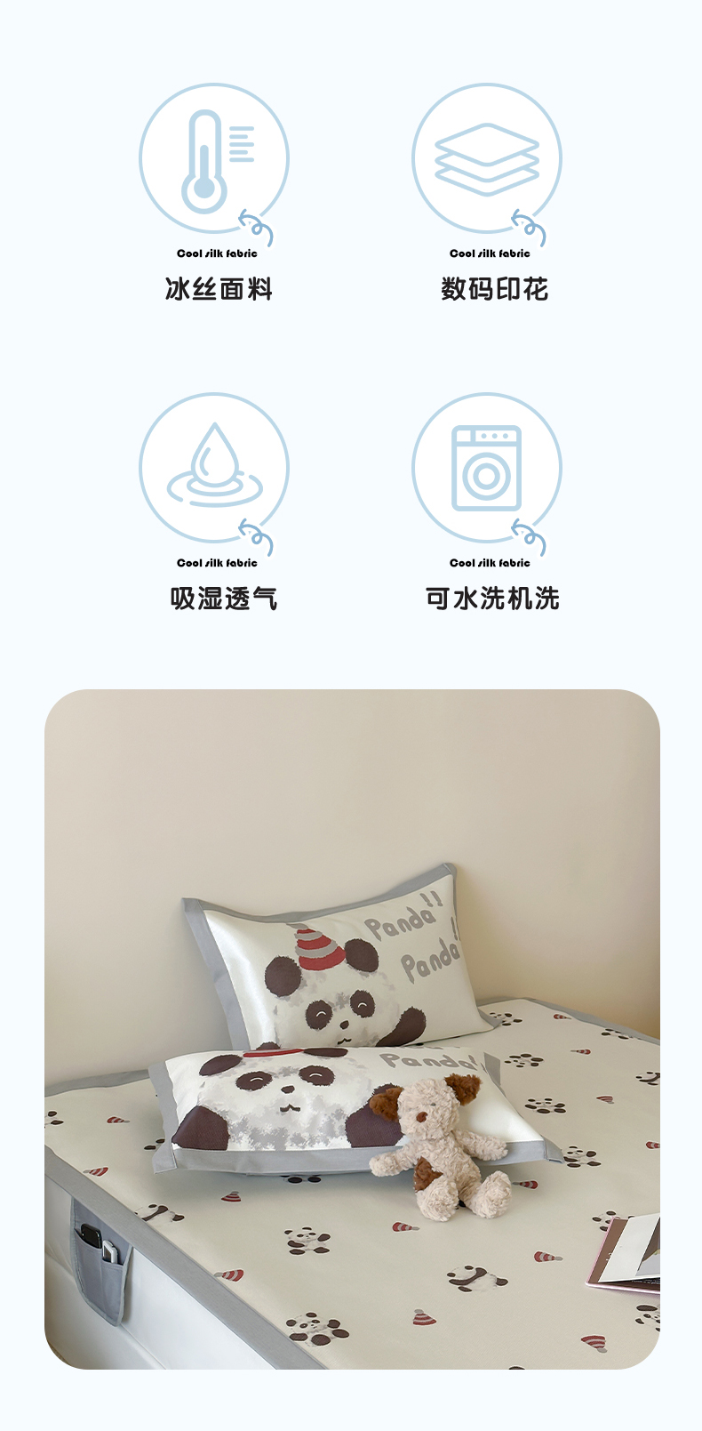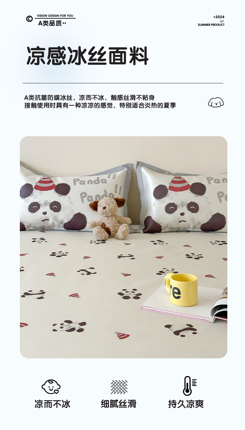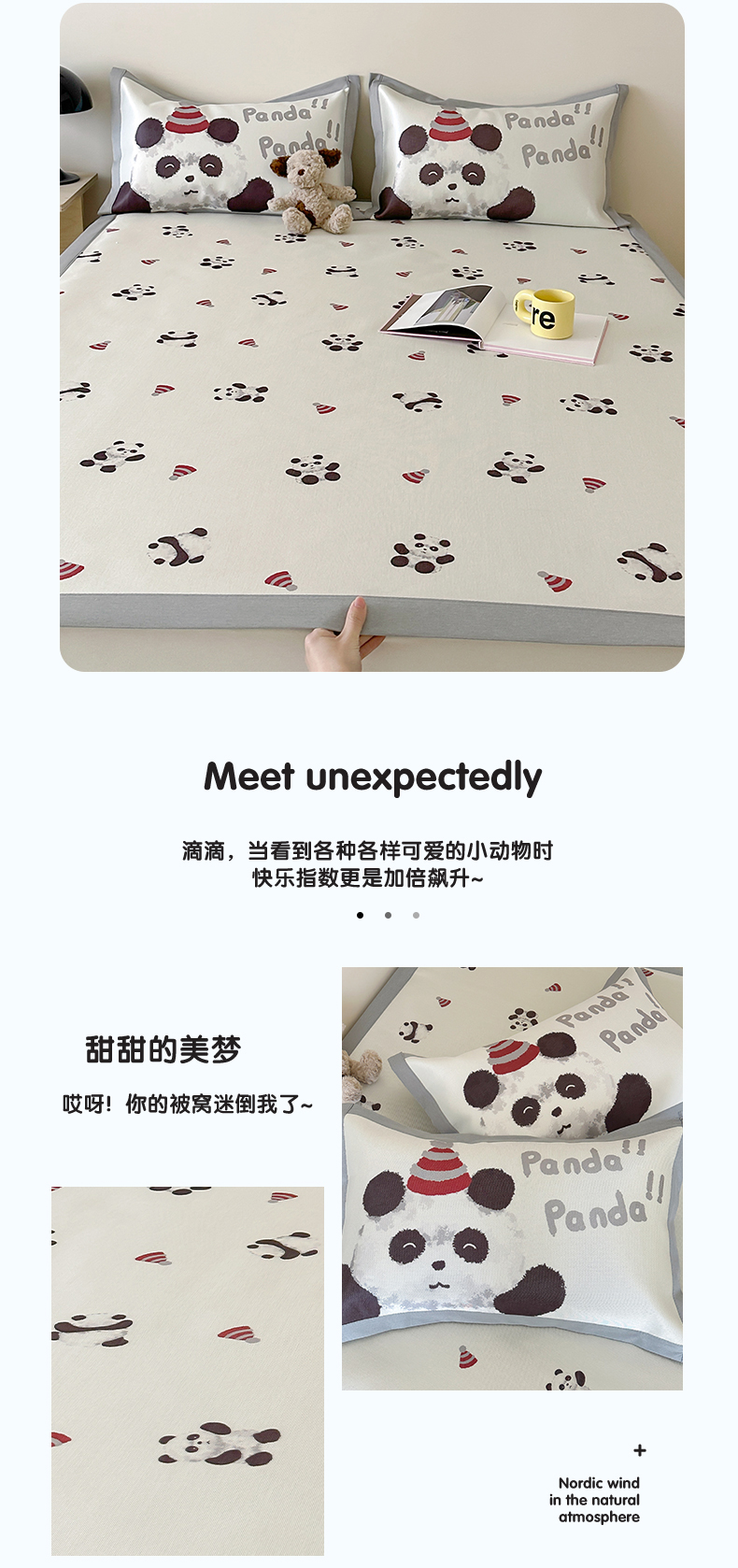 商品名称:圆岛 2024新款A类900D萌宠系列冰丝养生席 熊猫崽崽