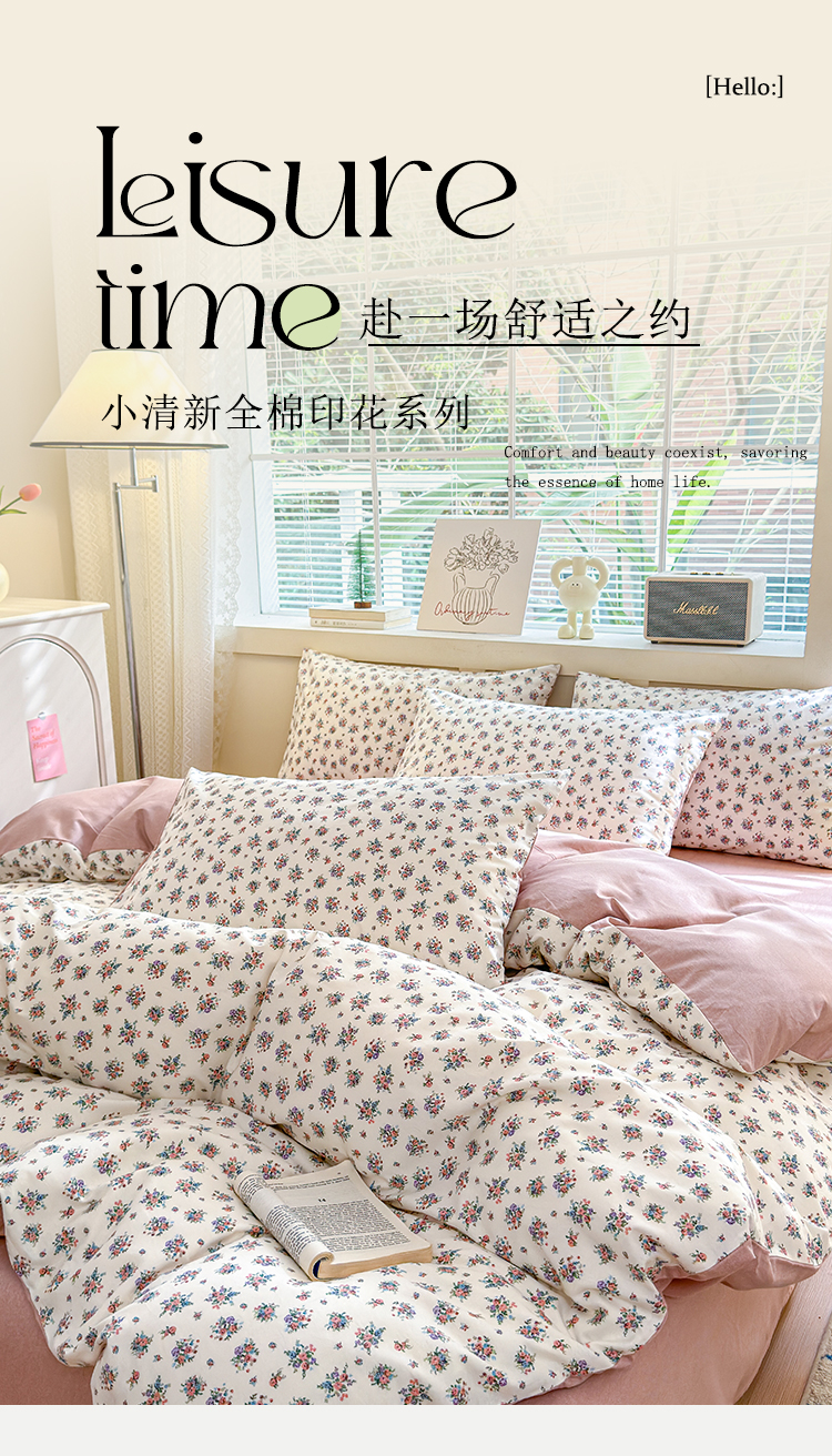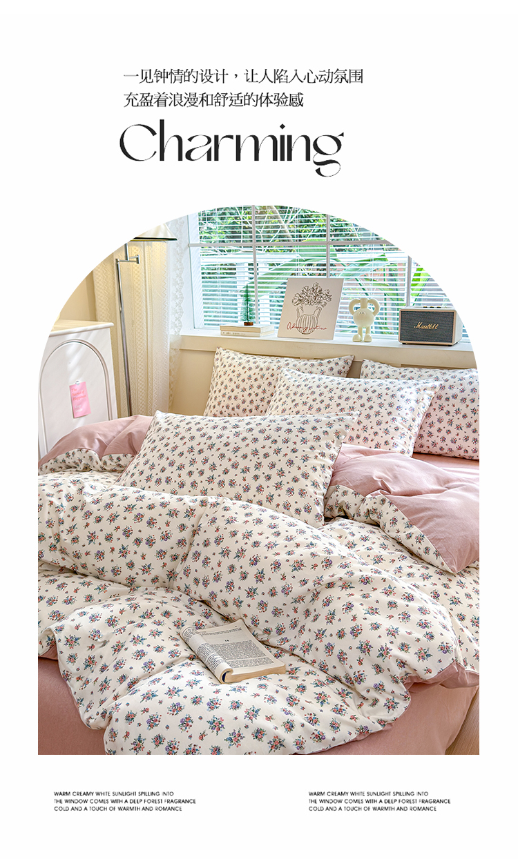 当前位置: 91家纺网 > 商品网购 > 床品套件 > 四件套 > 全棉普通四件套 > 清雅福 2024新款全棉13372小清新四件套和单品系列第四季 花花酱