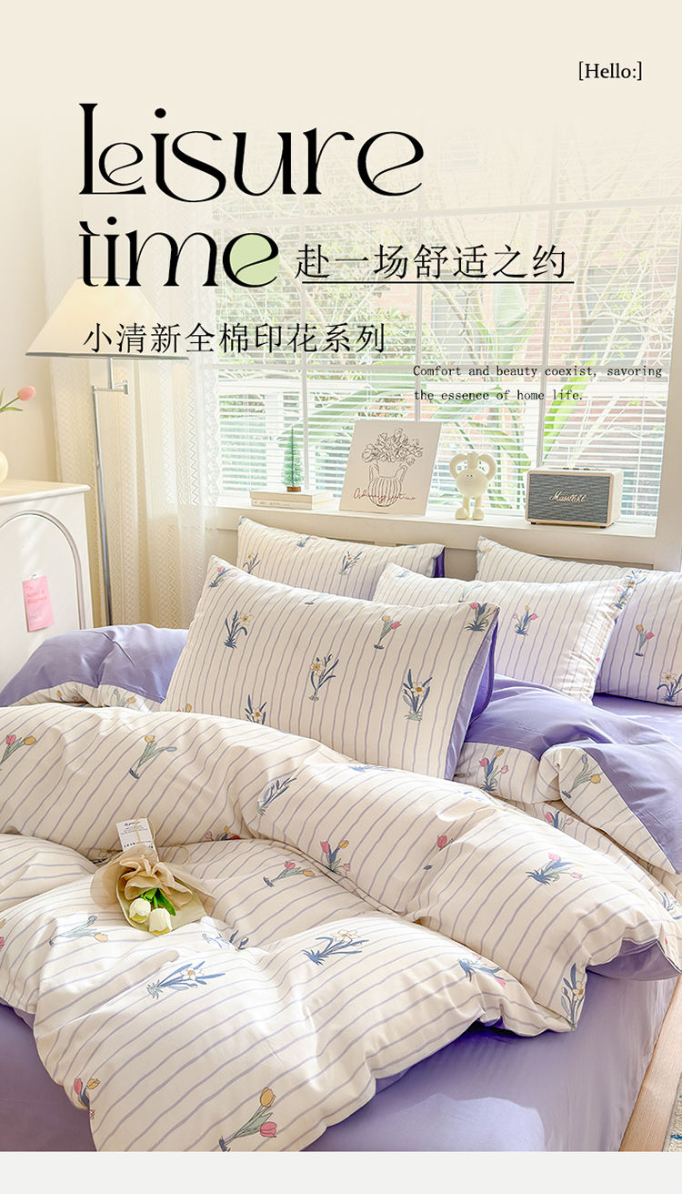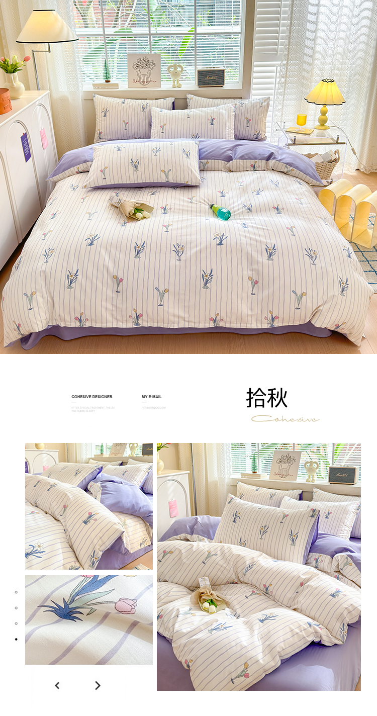 当前位置: 91家纺网 > 商品网购 > 床品套件 > 四件套 > 全棉普通四件套 > 清雅福 2024新款全棉13372小清新四件套和单品系列第四季 拾秋