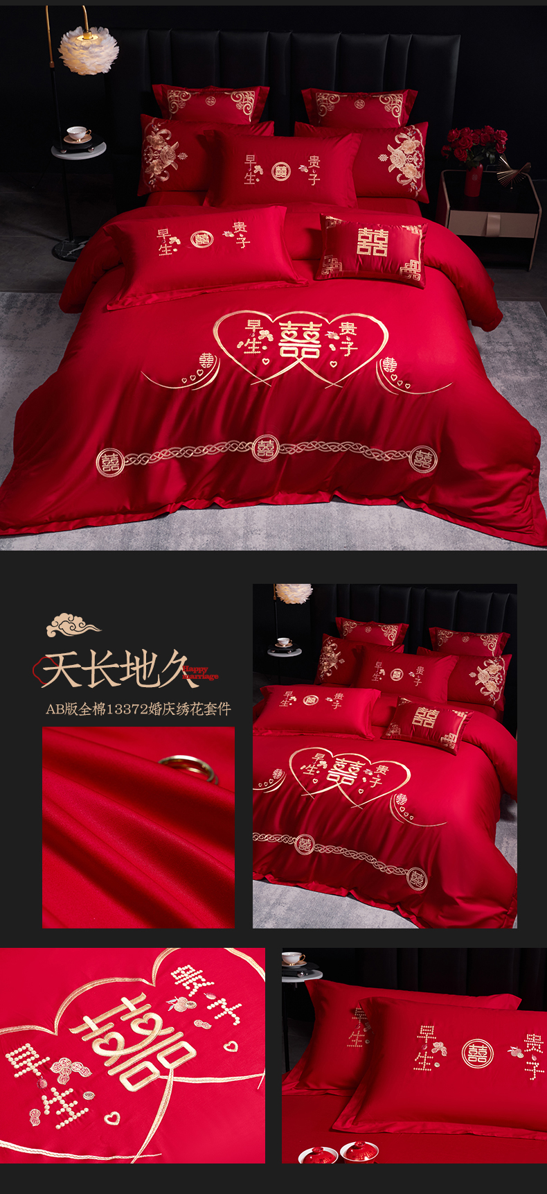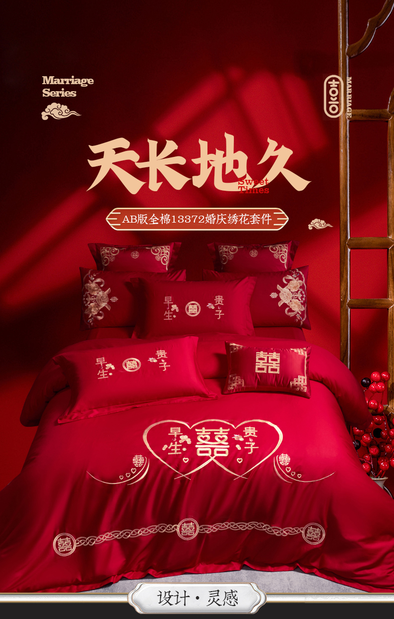 当前位置: 91家纺网 > 商品网购 > 床品套件 > 四件套 > 婚庆四件套 > 千禧家纺 2025新款全棉13372婚庆绣花系列 天长地久