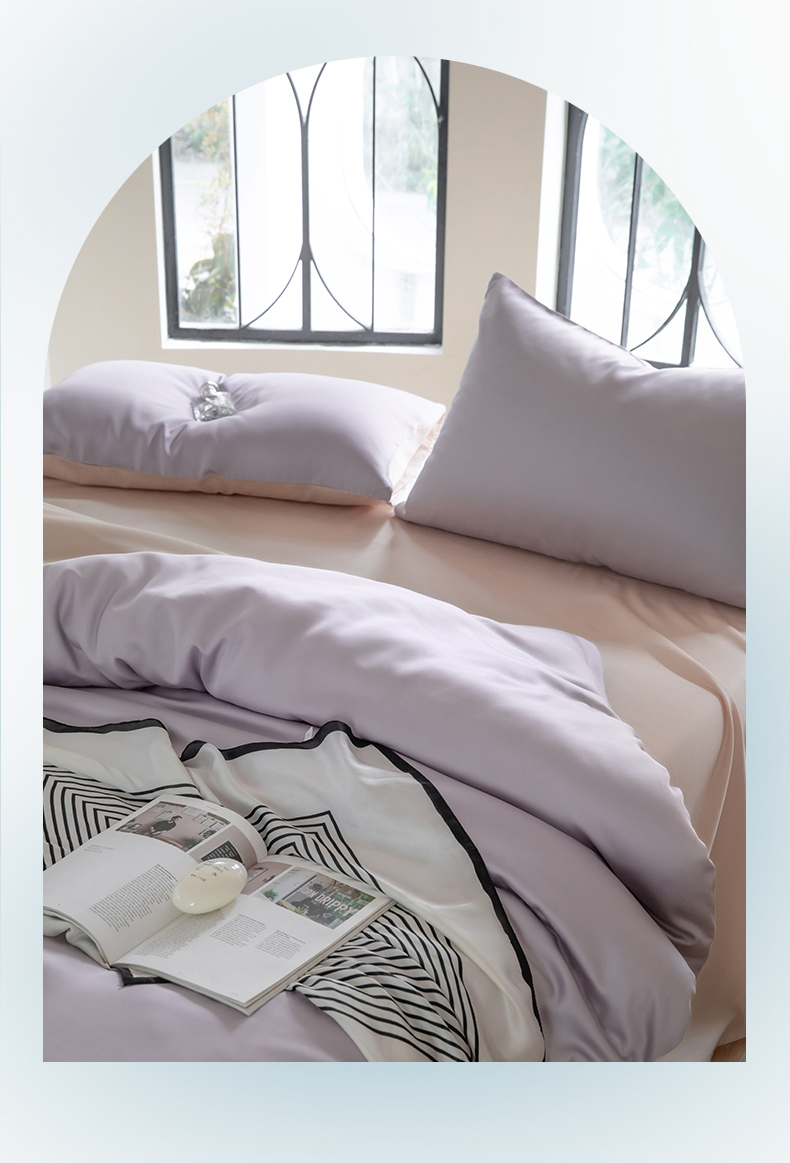 商品名称:佳汐蓝 2024新款AB版高支高密莱赛尔兰精天丝柔系列套件 实拍图 柔-风信紫+蜜汁粉