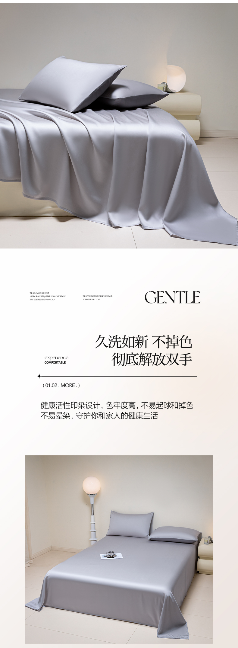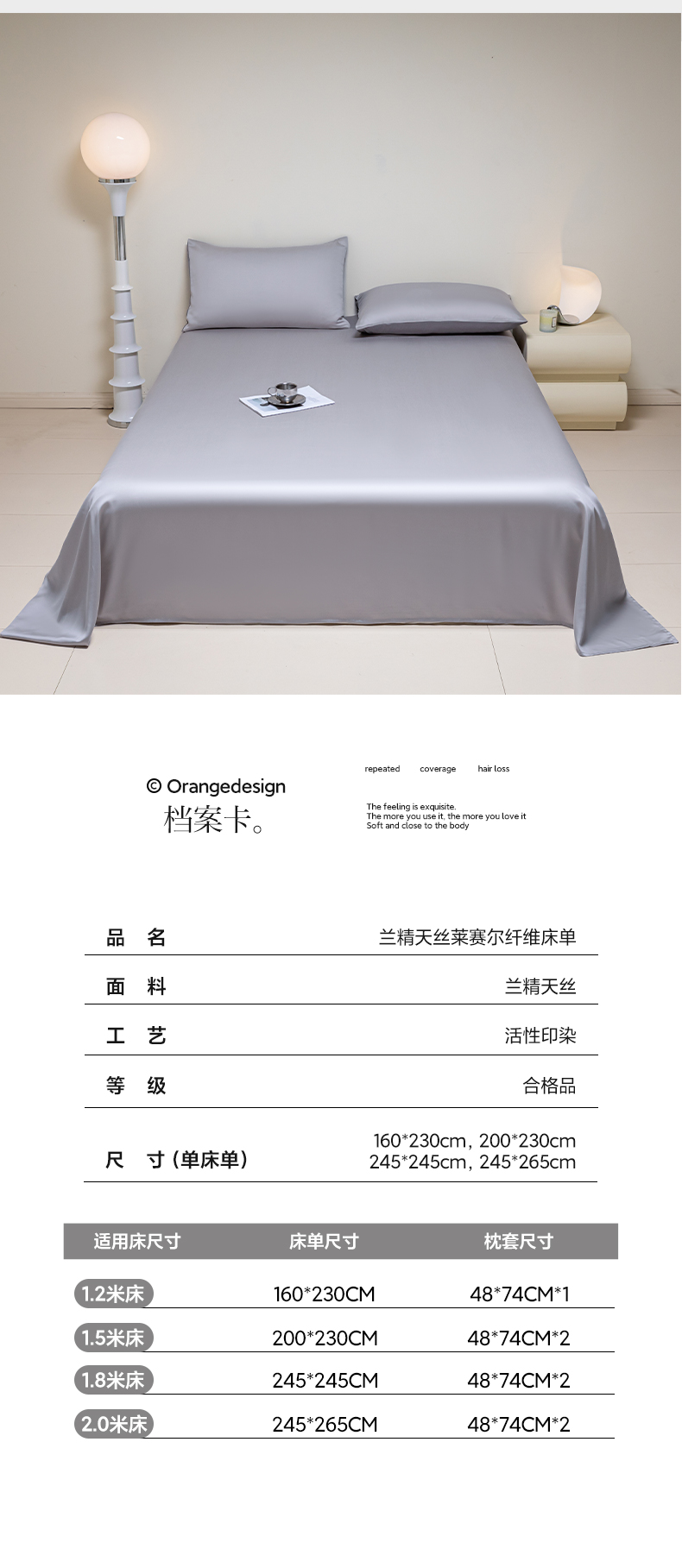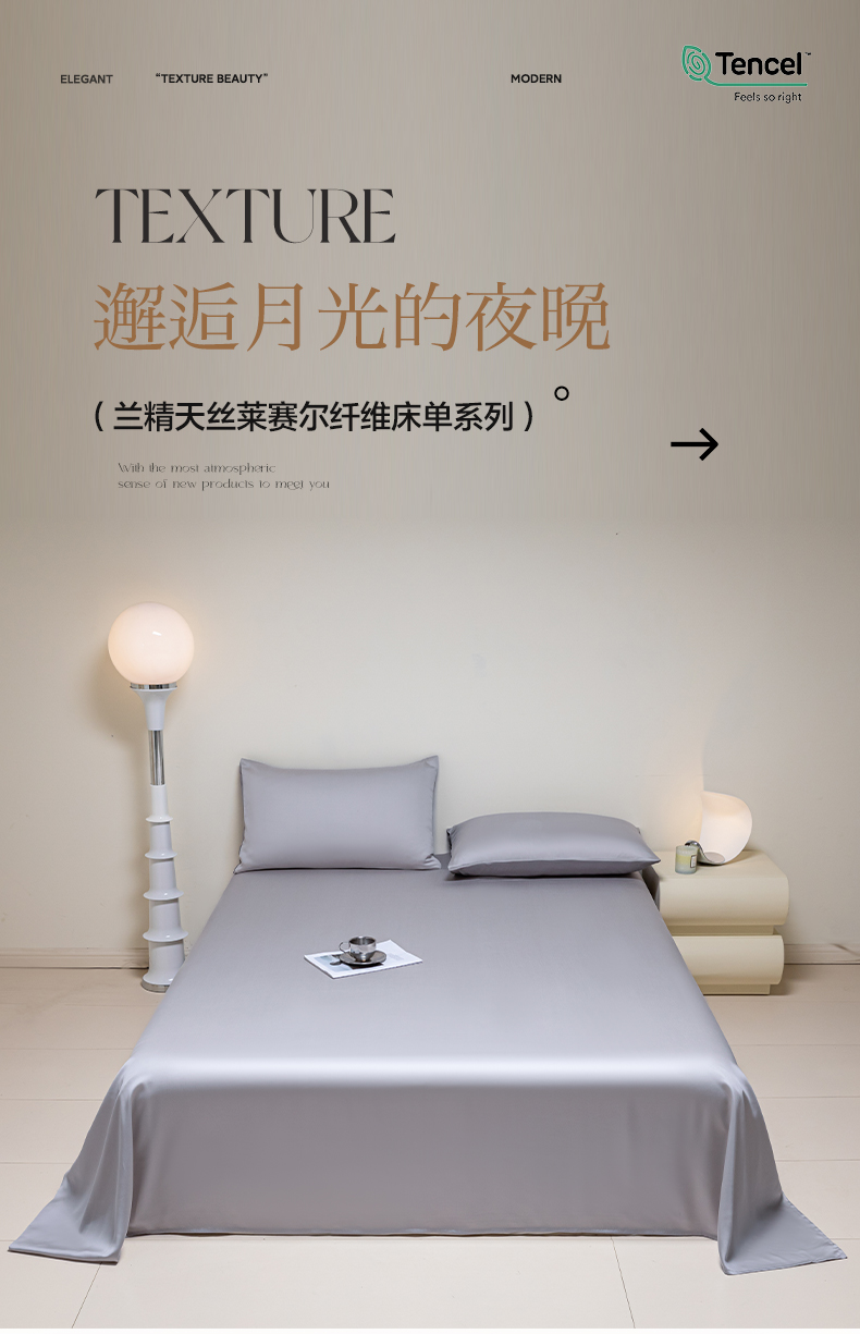 佳汐蓝 2024新款AB版高支高密莱赛尔兰精天丝柔单床单 棚拍图 柔-气质灰