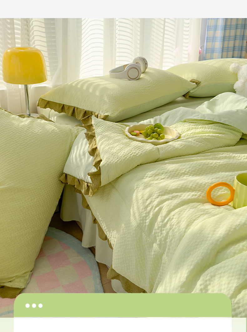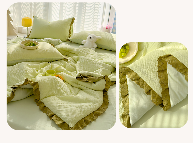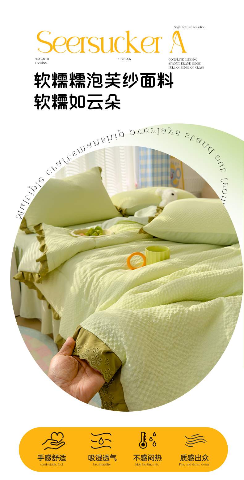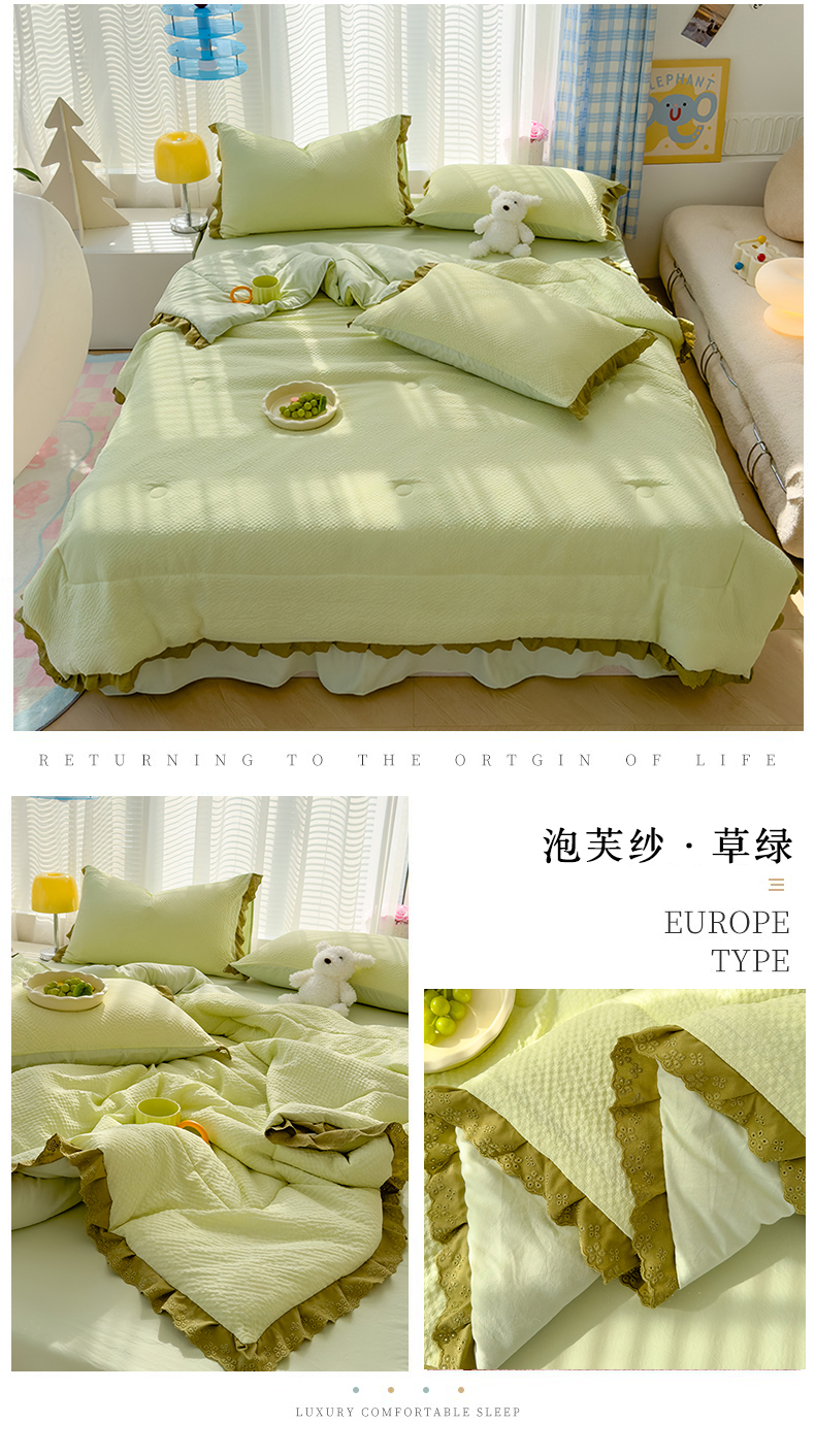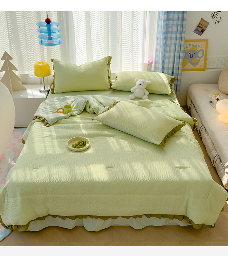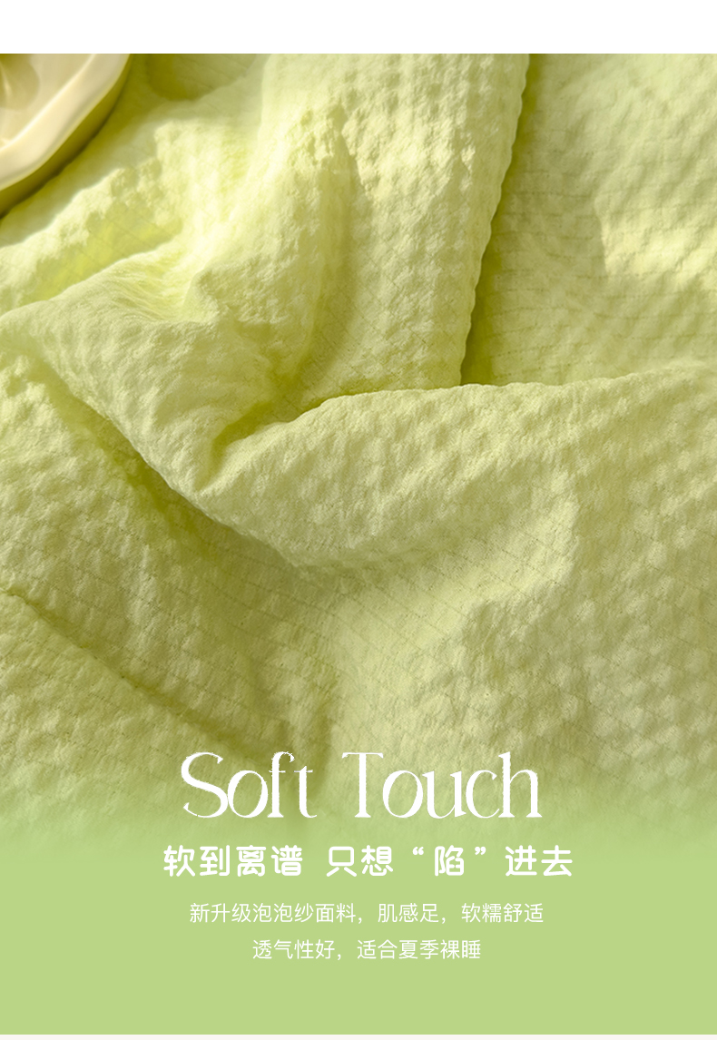 当前位置: 91家纺网 > 商品网购 > 床品套件 > 四件套 > 夏被四件套 > 颜选 2024新款泡芙棉夏被单品夏被四件套 泡芙纱草绿