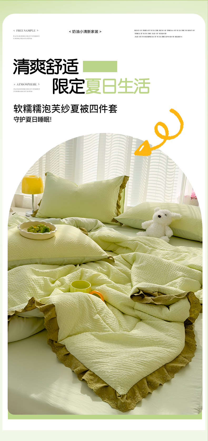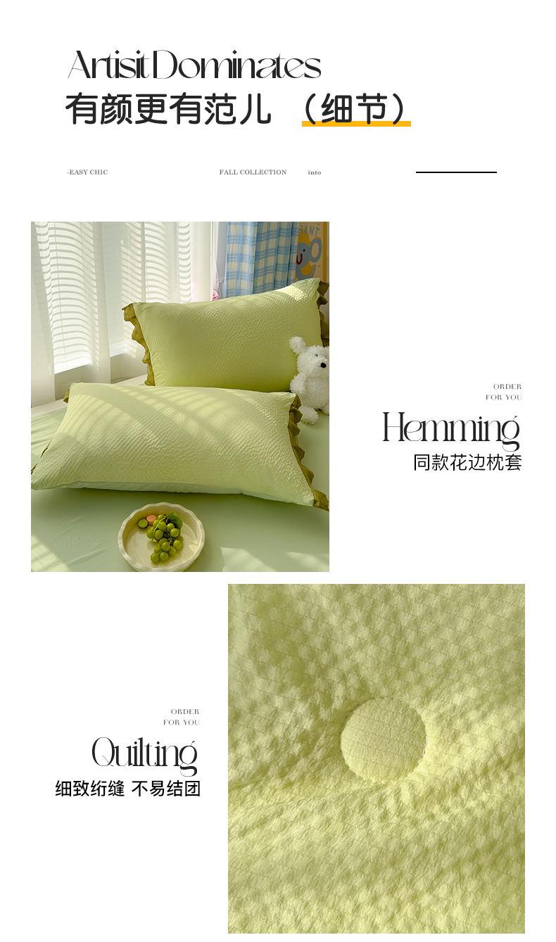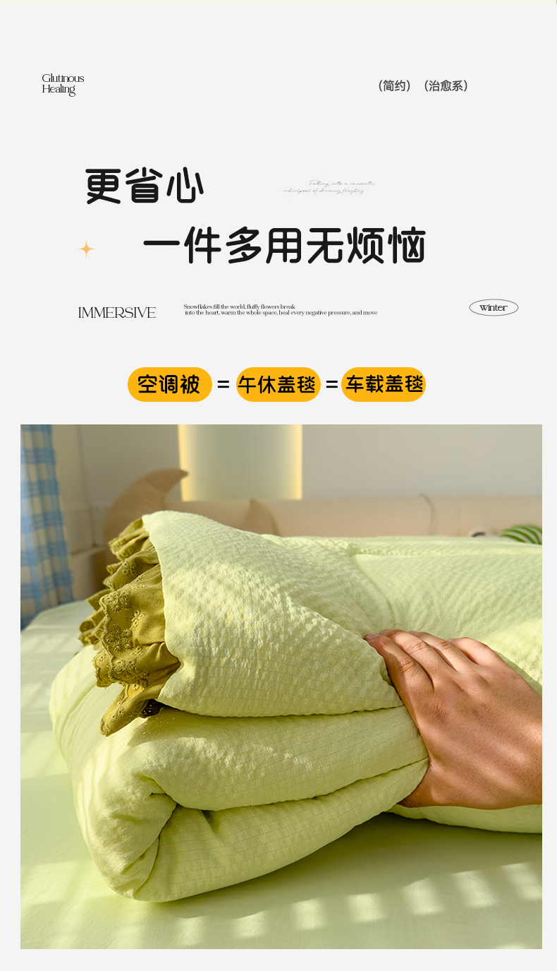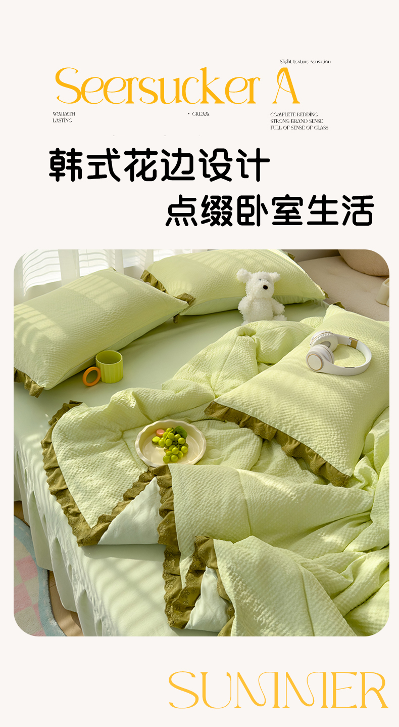 当前位置: 91家纺网 > 商品网购 > 床品套件 > 四件套 > 夏被四件套 > 颜选 2024新款泡芙棉夏被单品夏被四件套 泡芙纱草绿