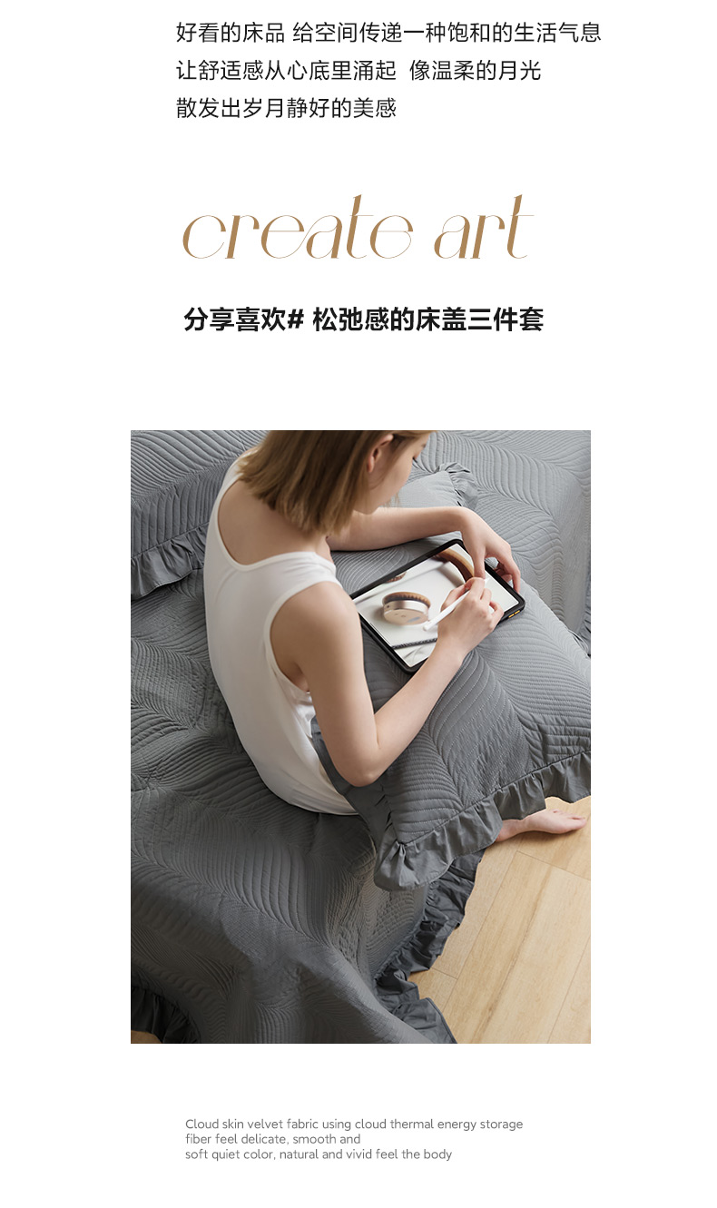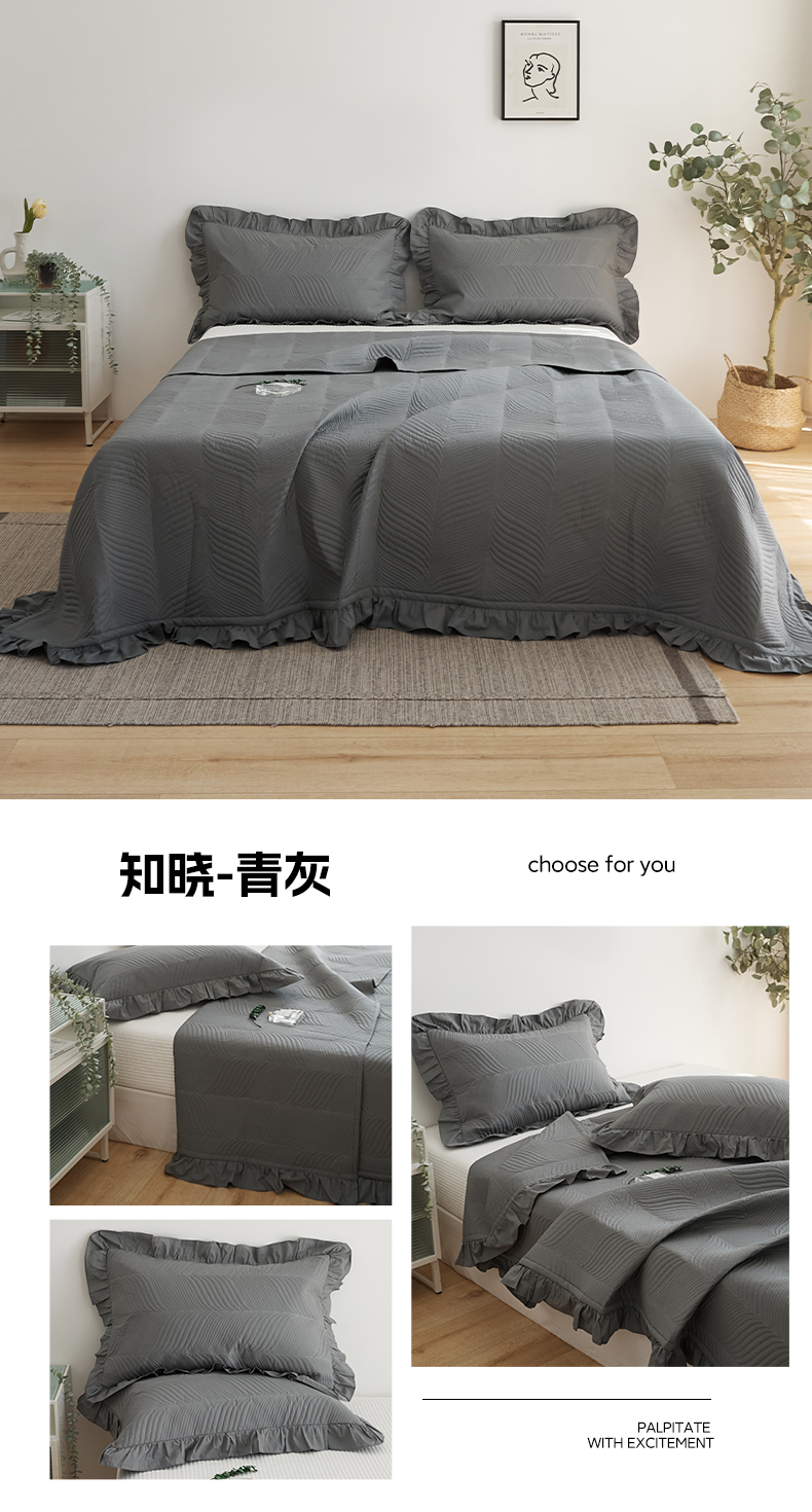 商品名称:EH家居 2024新款全棉床盖三件套-知晓系列 知晓-青灰