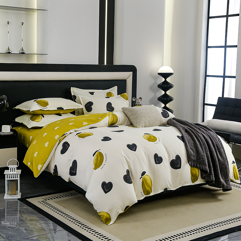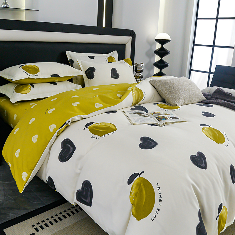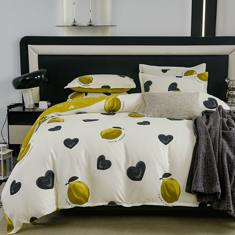 商品名称:梦卓家纺 2025新款直播加厚植物羊绒四件套高克重磨毛跨境四件套 大量现货爱心柠檬