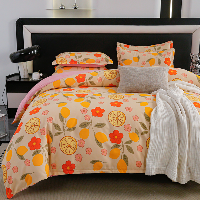 商品名称:梦卓家纺 2025新款直播加厚植物羊绒四件套高克重磨毛跨境四件套 大量现货柠橙