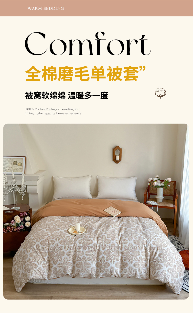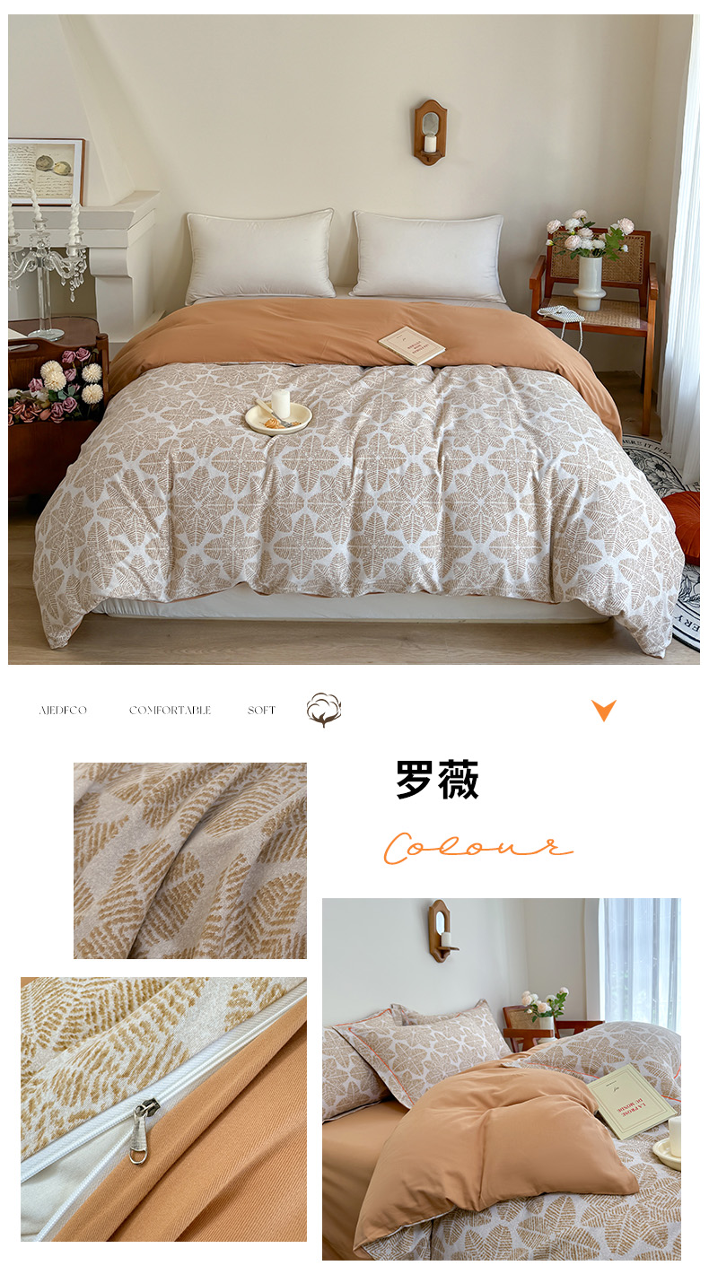 • 91家纺网 家纺一手货源 找家纺 艾迪尚家纺 2025新款生态全棉磨毛印花四件套--单被套 罗薇
