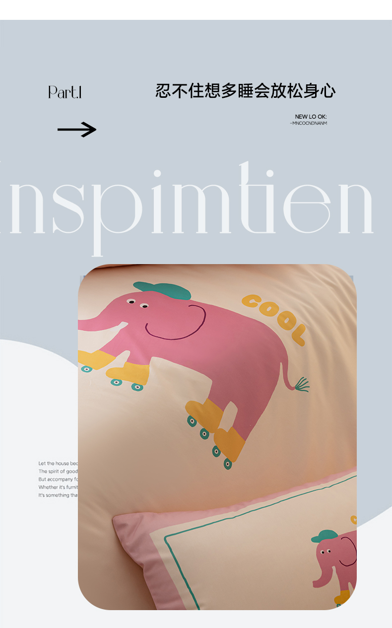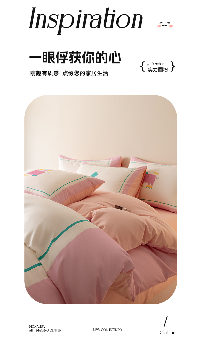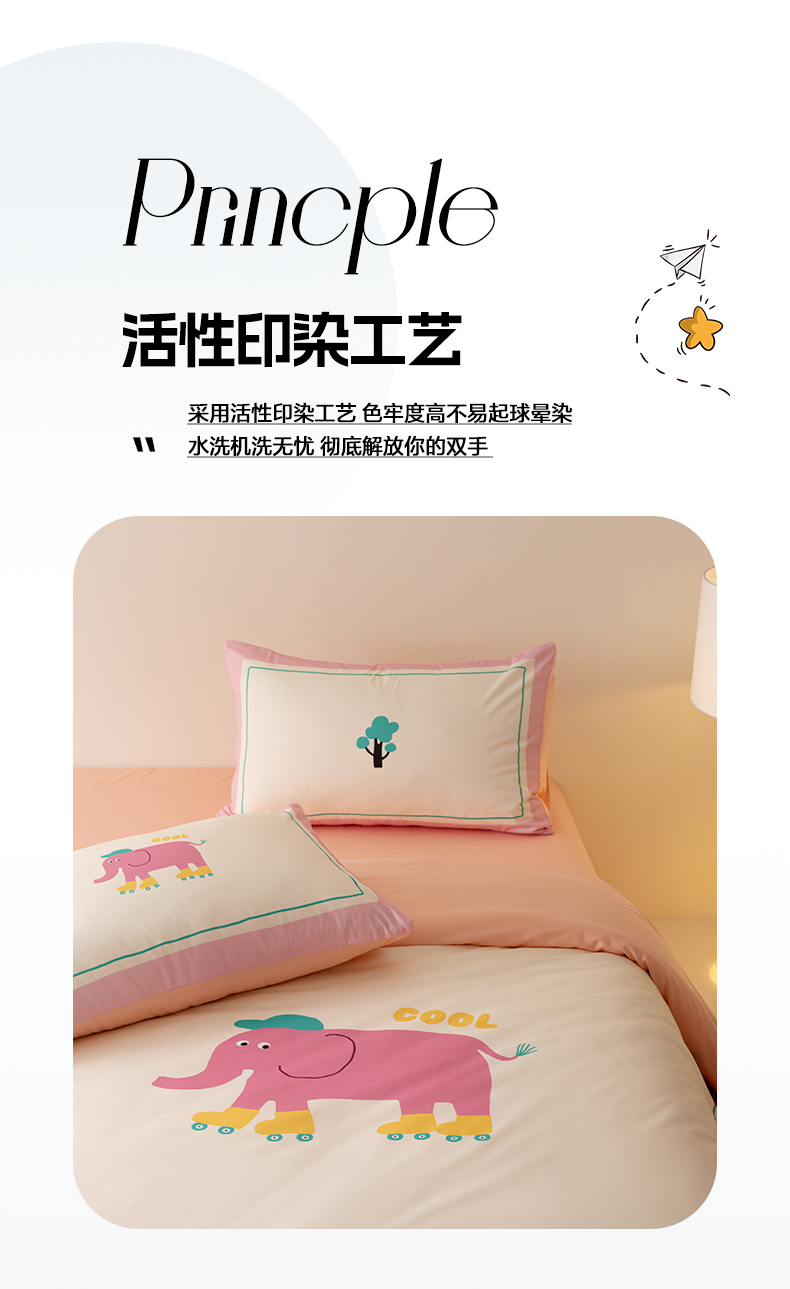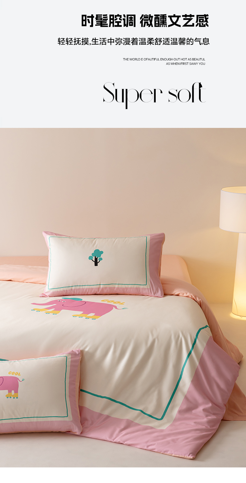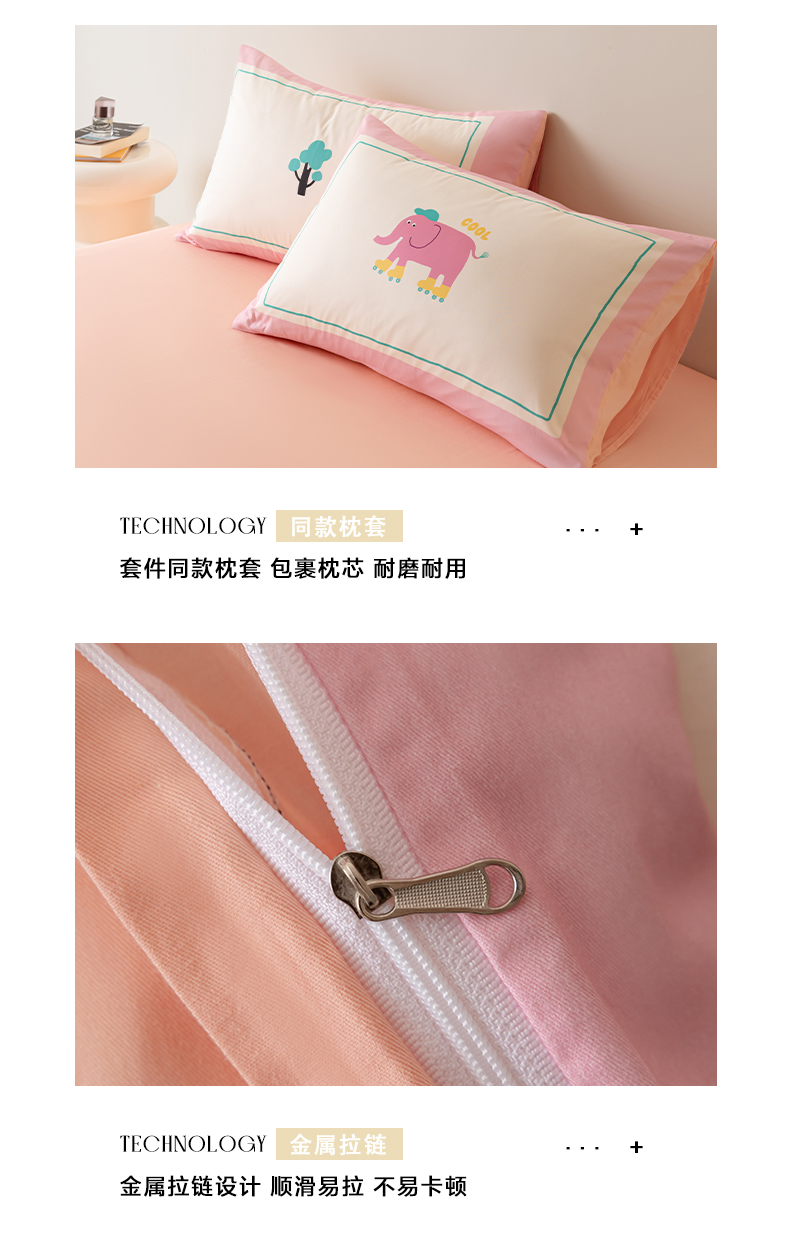 商品名称:雅居纺家纺 2024新款全棉印花13372大版四件套 粉色小象