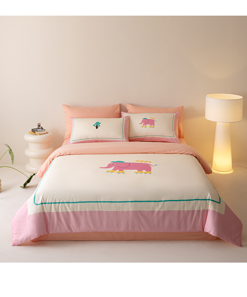 雅居纺家纺 2024新款全棉印花13372大版四件套 粉色小象