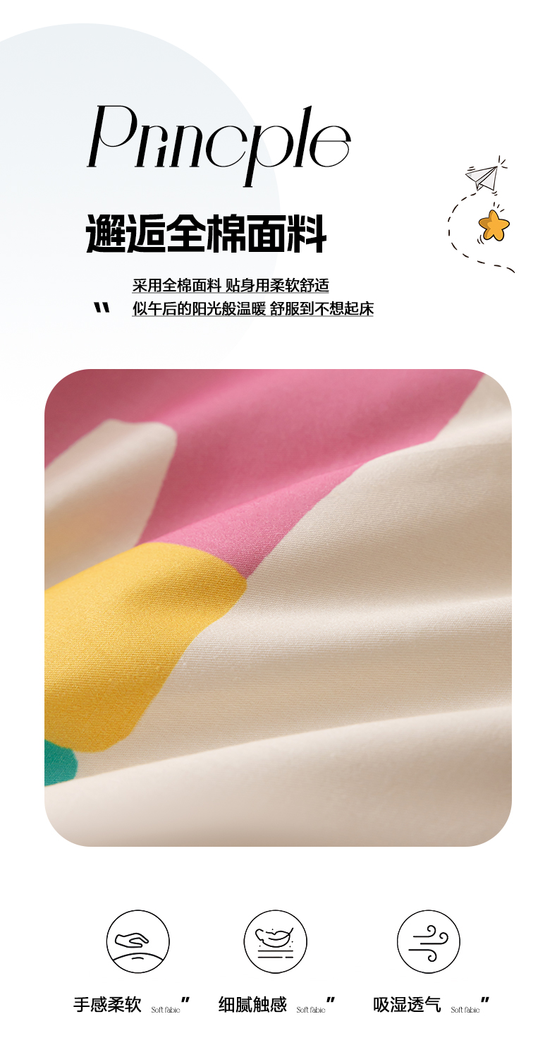 (总)雅居纺家纺 2022新款13070全棉印花四件套,波纹,多彩,简笔画,莓关系,奶油绿豹纹,倾心,数字