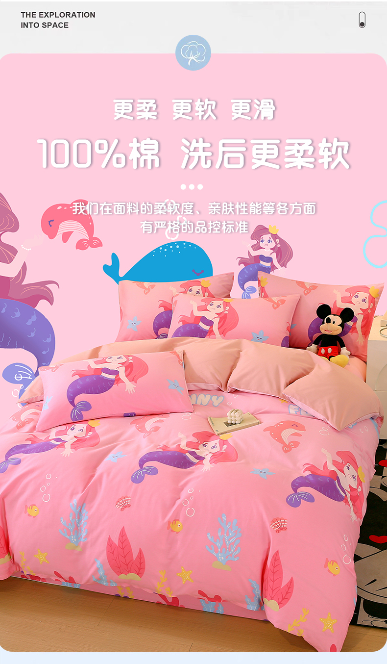商品名称:金鑫汇家纺 2024新款全棉印花单被套 小美人鱼