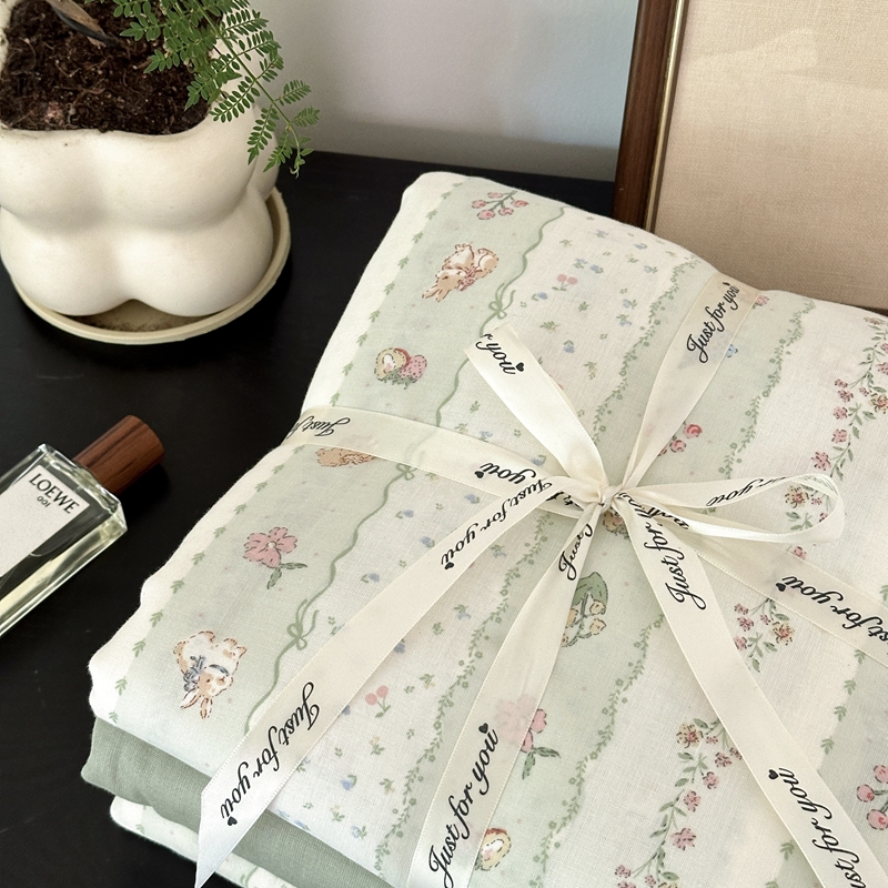 吉象家纺 2024新款双层纱四件套叠拍 草莓小兔