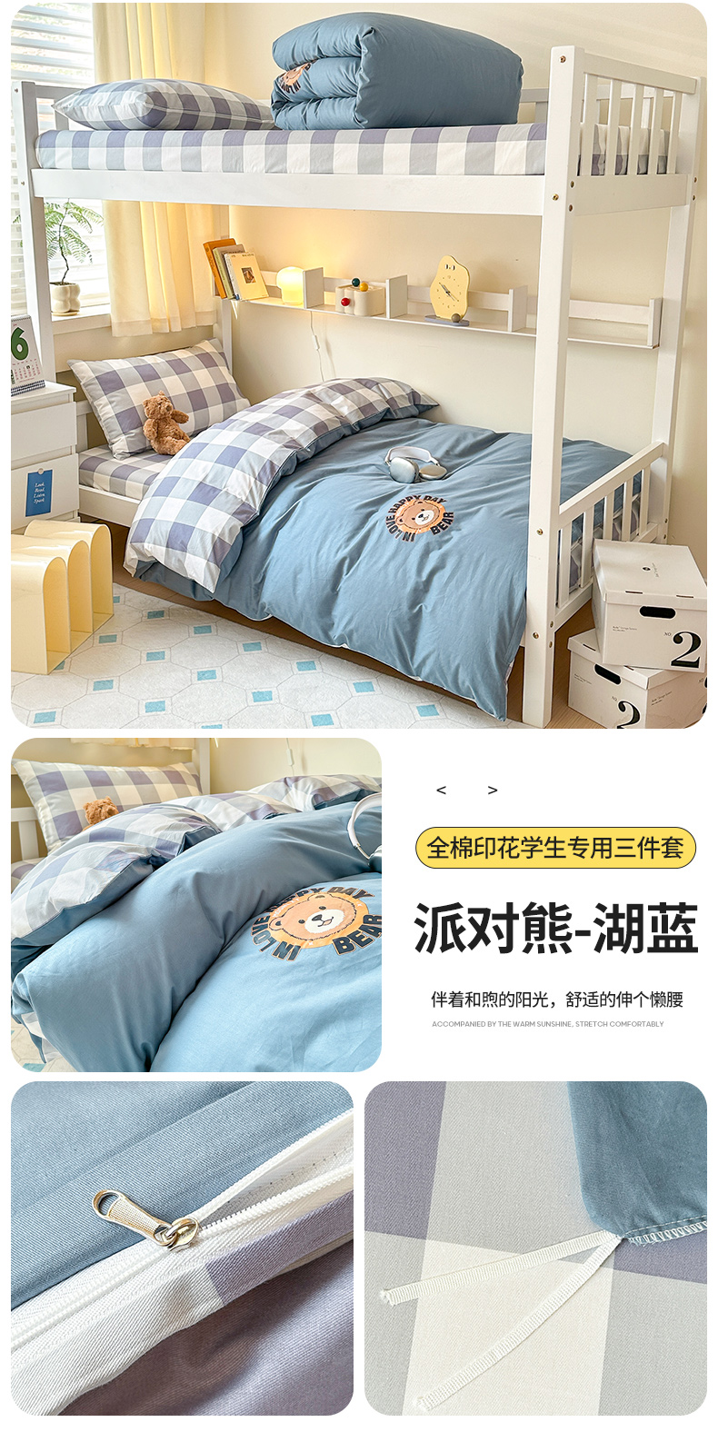 (总)梧桐树 2025新款全棉纯棉印花13372学生上下铺宿舍三件套,A1简格,A2皮皮狗,A3玛吉拉-灰,A4木马派对,A5侏罗纪,A6元气小熊,A8睡梦熊,A9维纳斯-蓝,A11爱尔花园-白