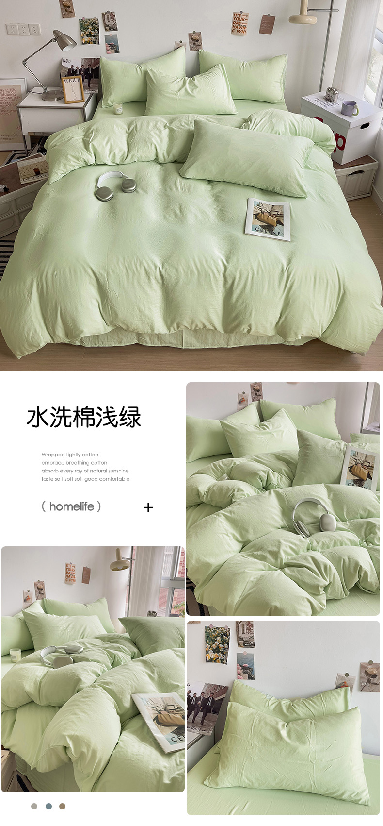 商品名称:(总)韩巢家纺 2024新款日式ins风超柔褶皱亲肤水洗棉四件套 -纯色系列(提供卖家秀)
