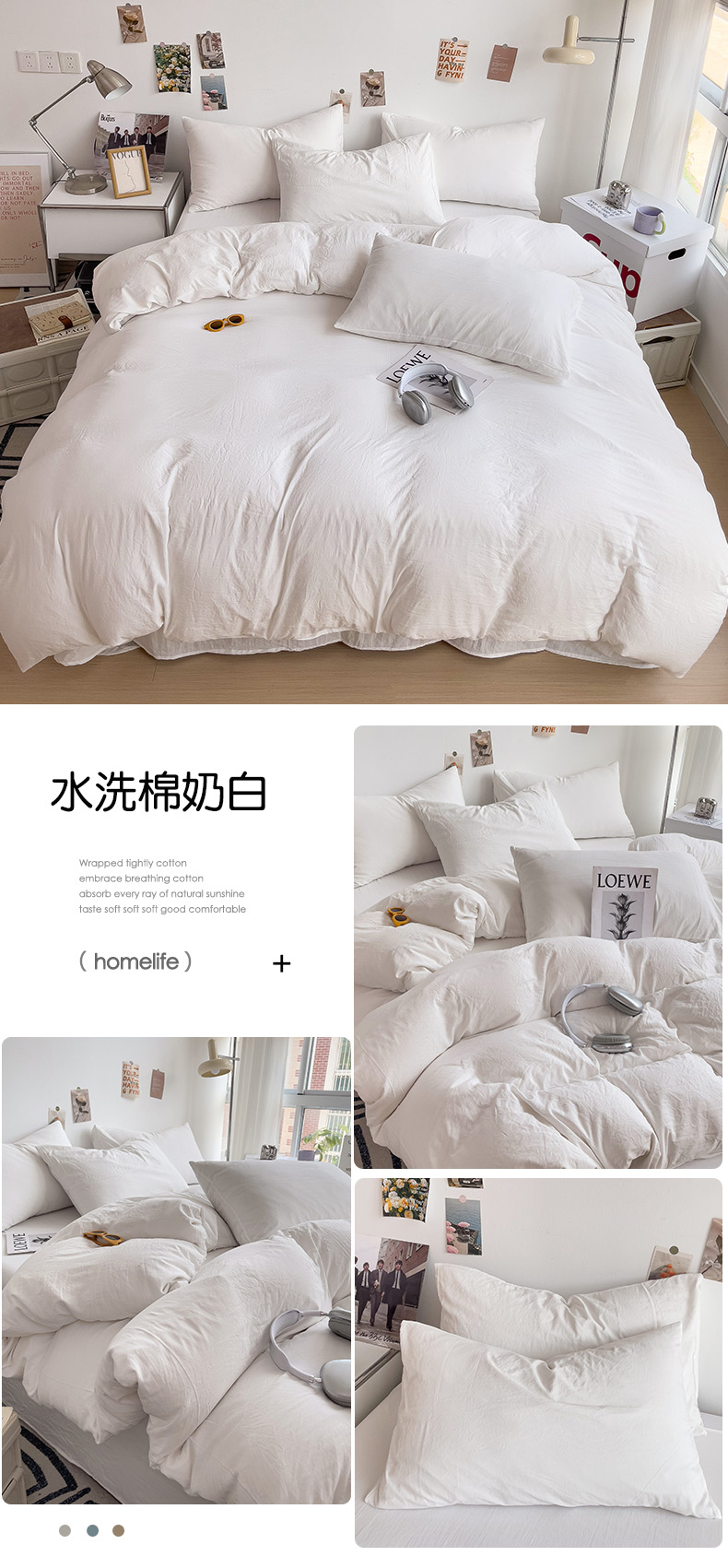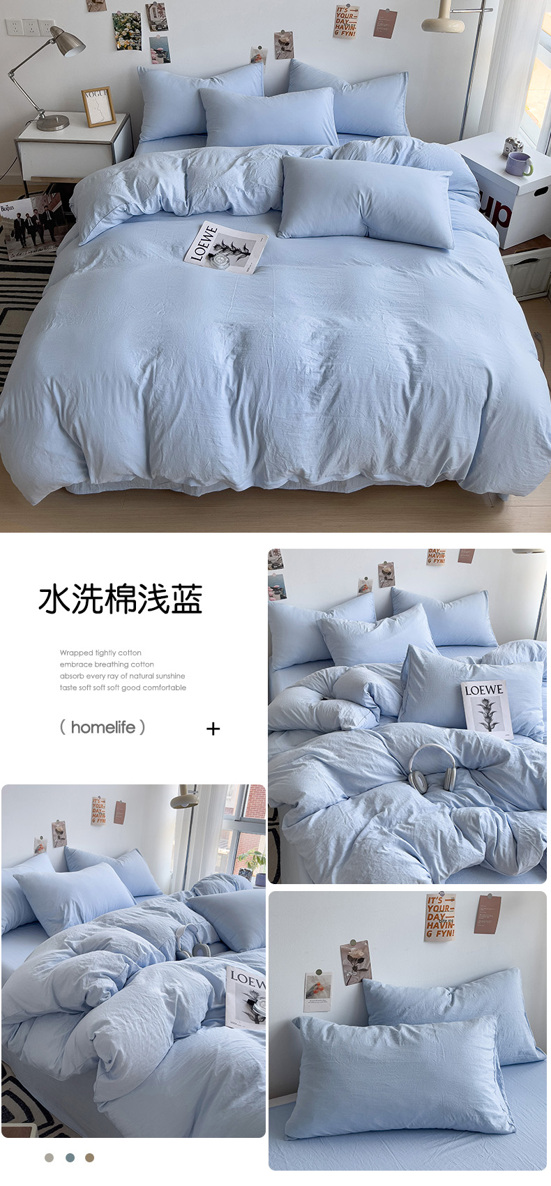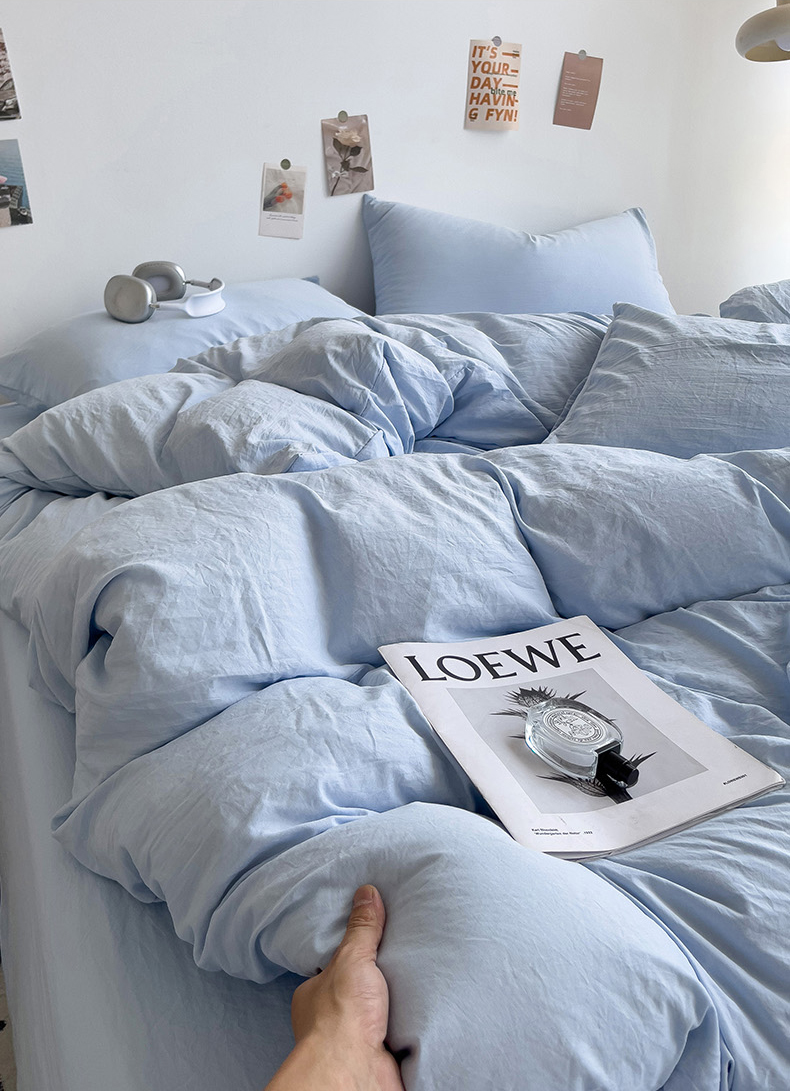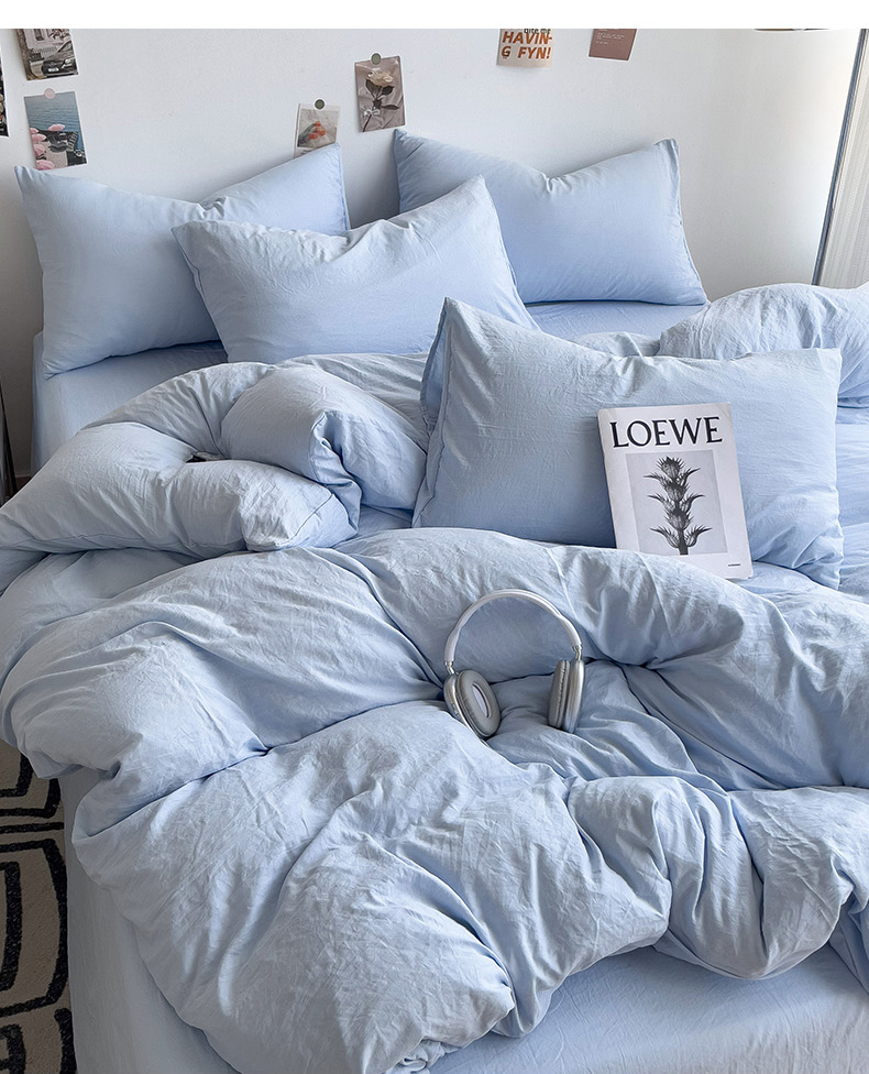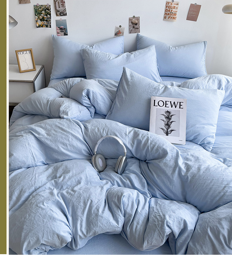 (总)韩巢家纺 2024新款日式ins风超柔褶皱亲肤水洗棉四件套 -纯色系列(提供卖家秀)